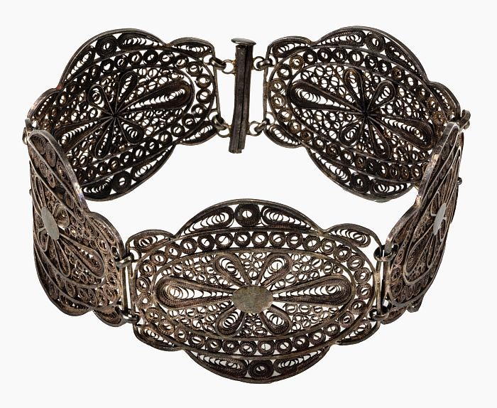Kleine beurs van zilveren ringetjes, beugel bewerkt ...