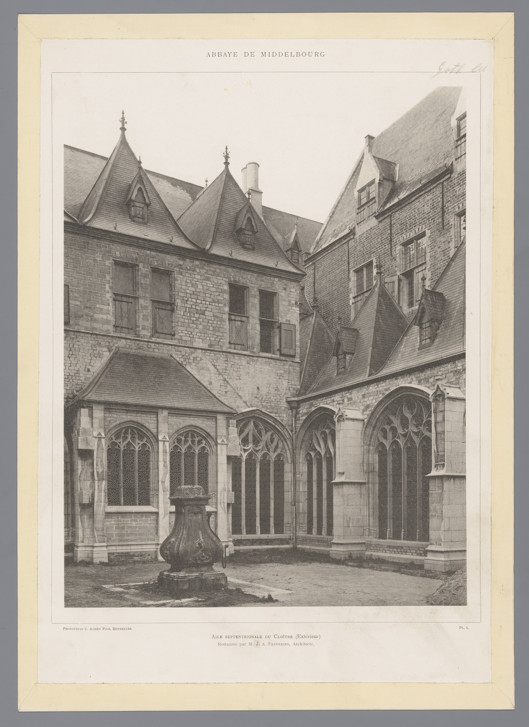 Gezicht op de noordelijke kloostergang van de Abdij ...