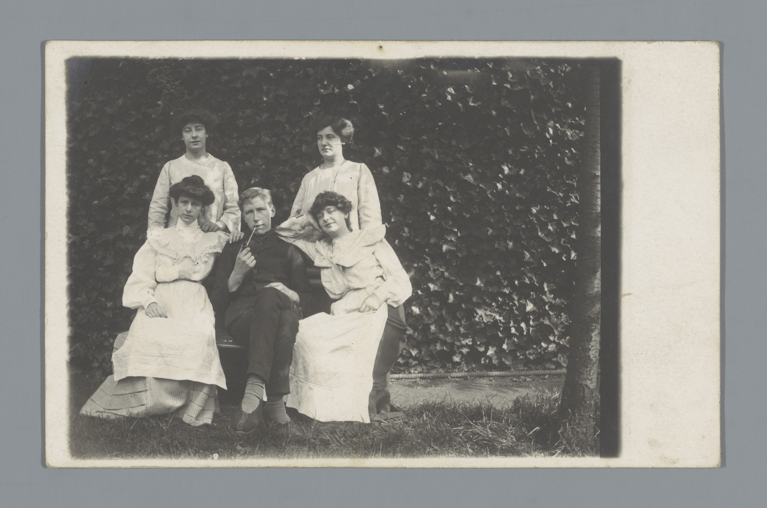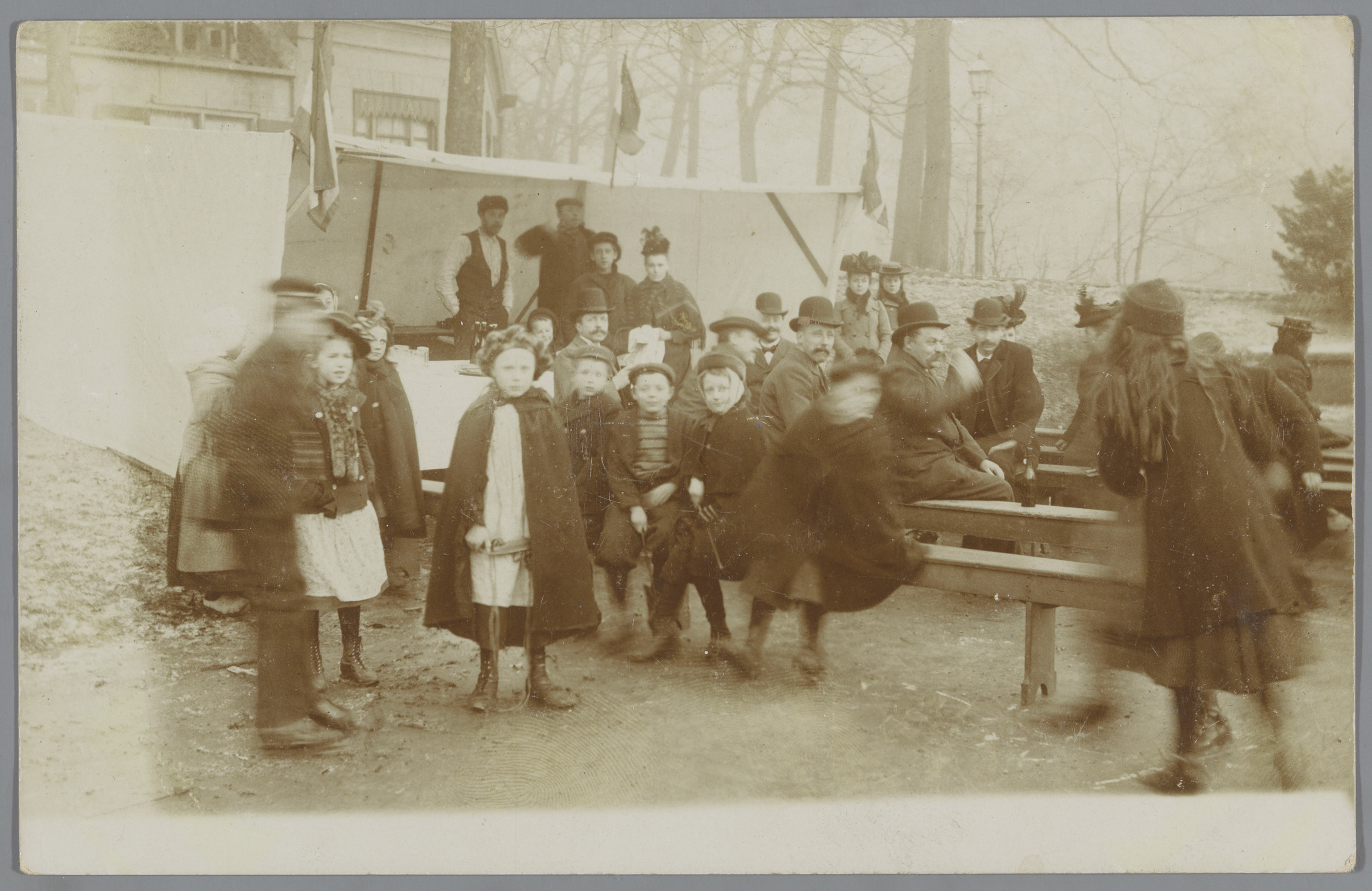 Groepsportret van een onbekend gezelschap op de Duiv...