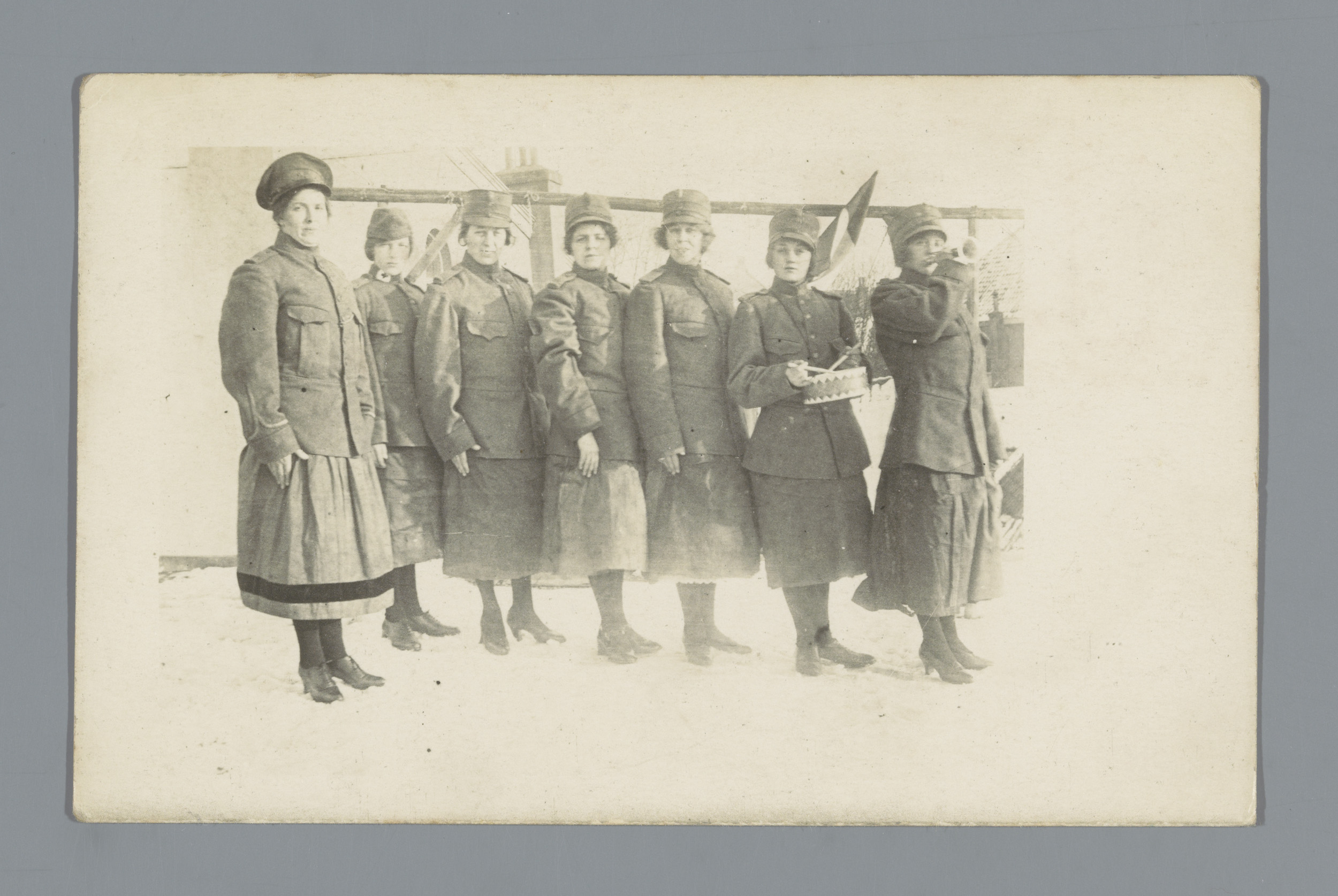 Groepsportret van zeven onbekende vrouwen in uniform