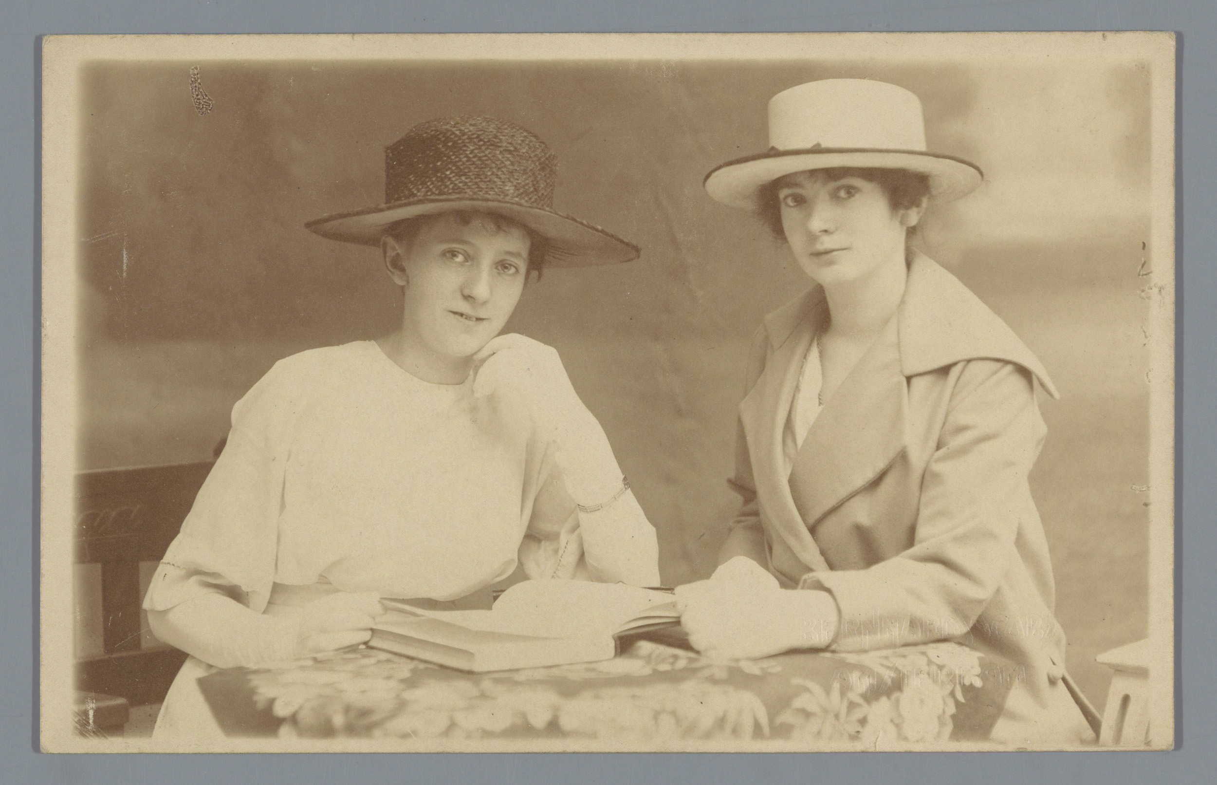 Portret van twee onbekende vrouwen aan een tafel