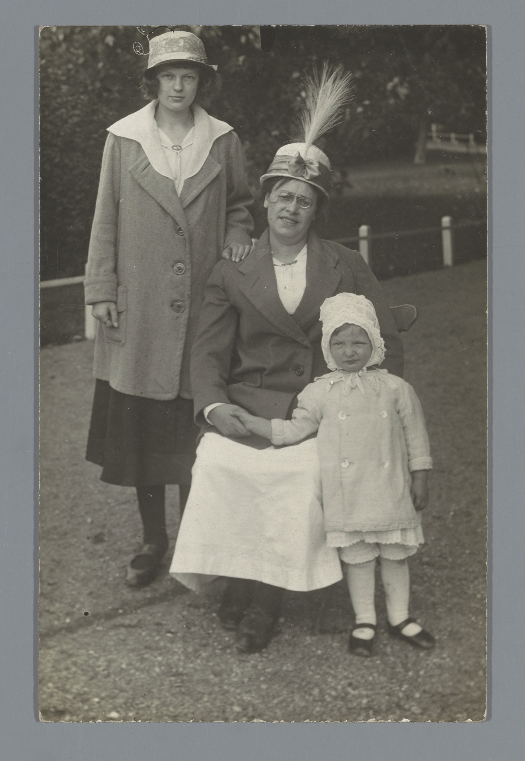 Portret van twee onbekende vrouwen en een kind in ee...