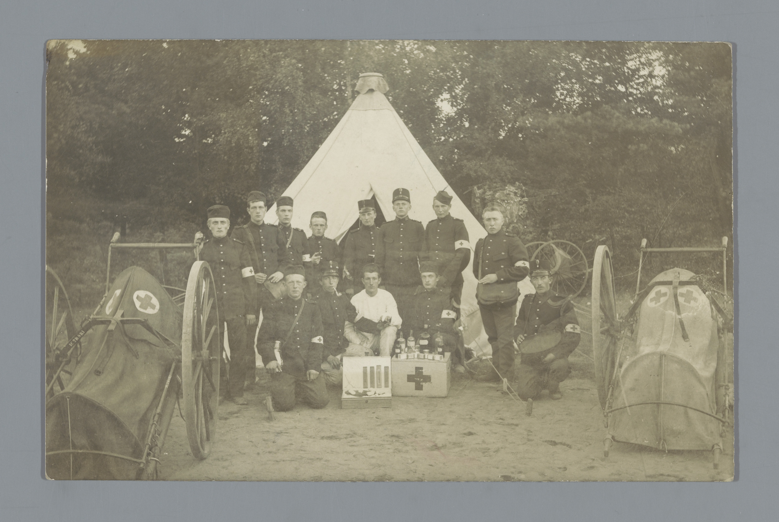 Groepsportret van broeders van het Rode Kruis voor e...