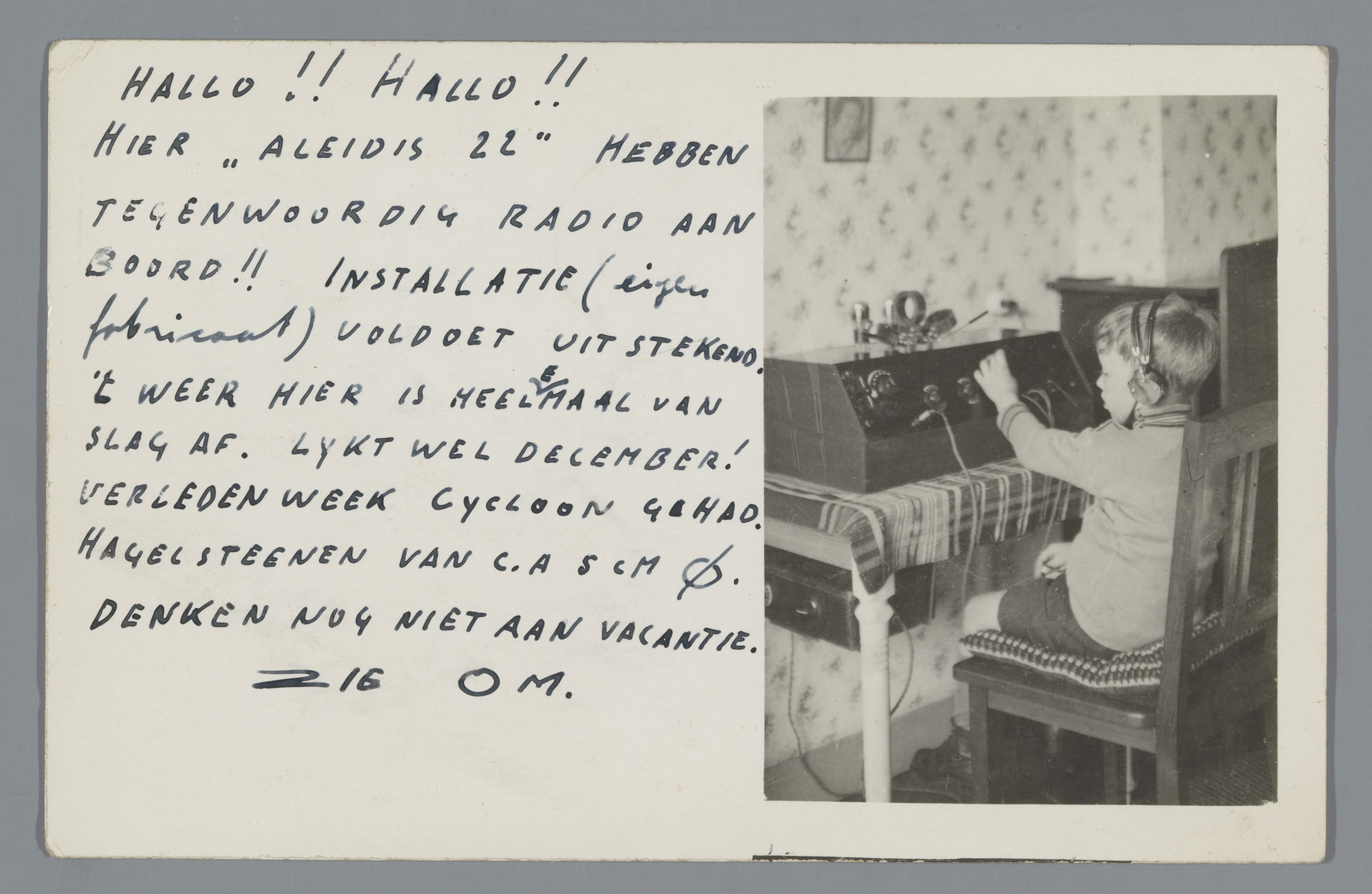 Jongen achter een radio-installatie in een interieur