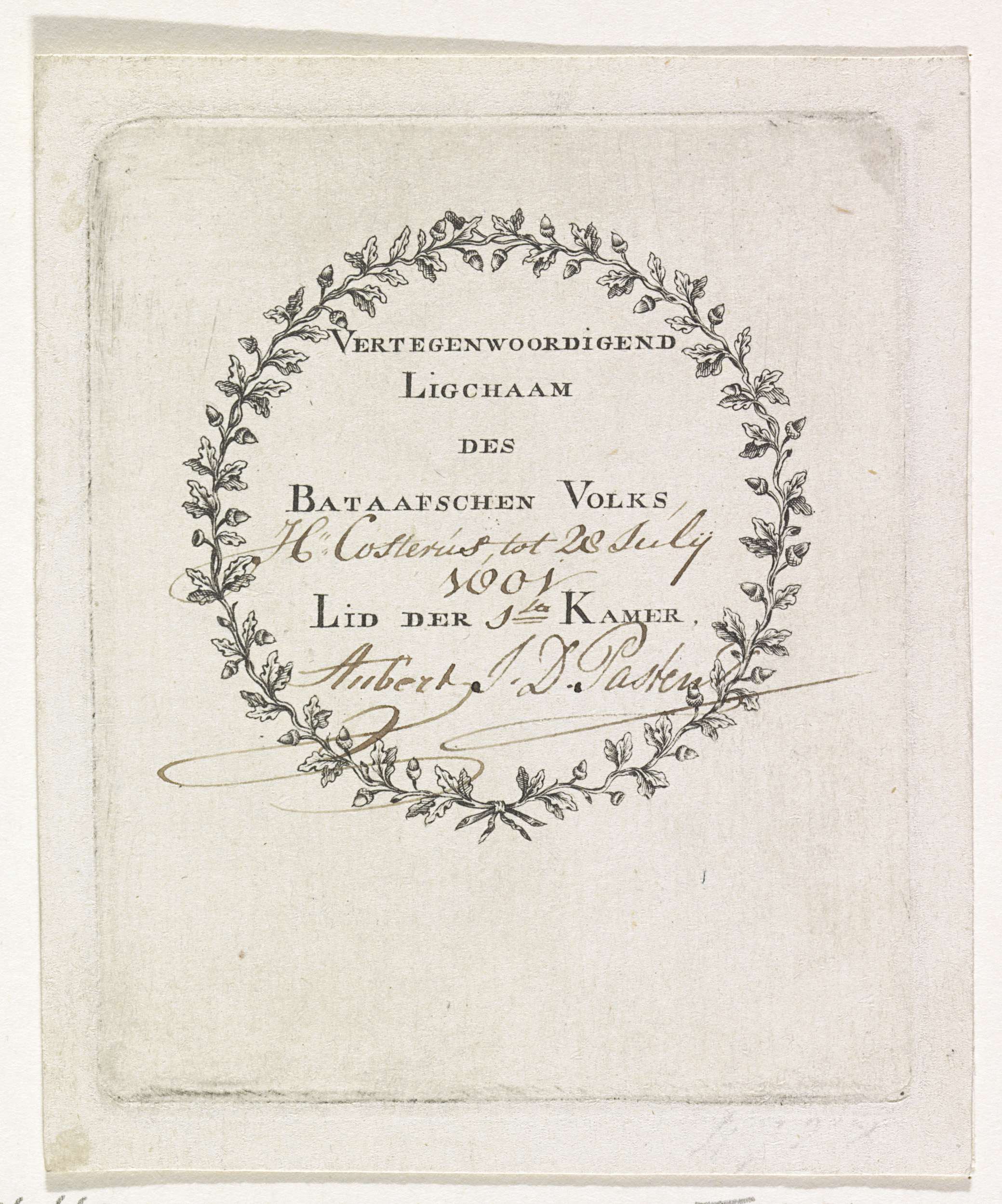 Naamkaart voor de bruidegom, ca. 1760