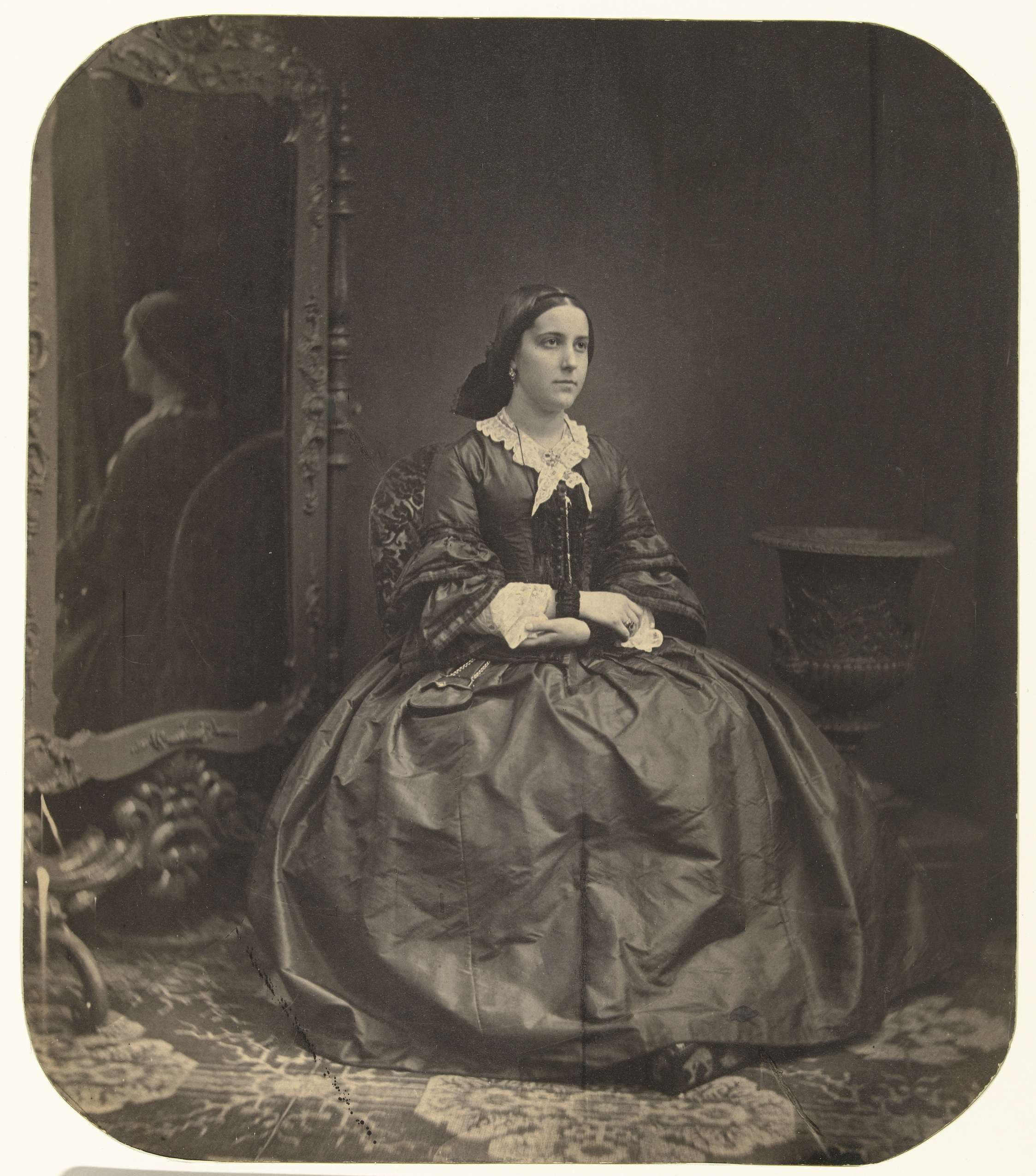 Portret van een onbekende vrouw voor een spiegel