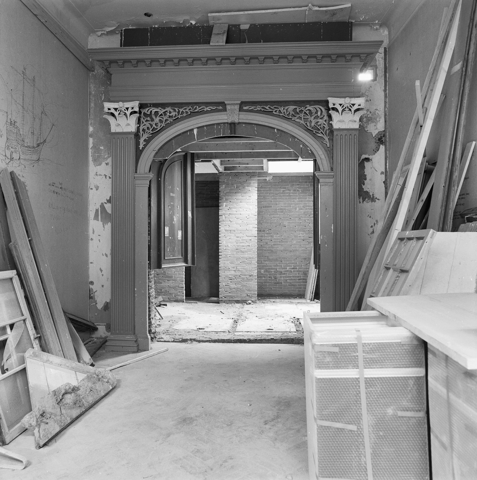 Interieur deuromlijsting tijdens restauratie
