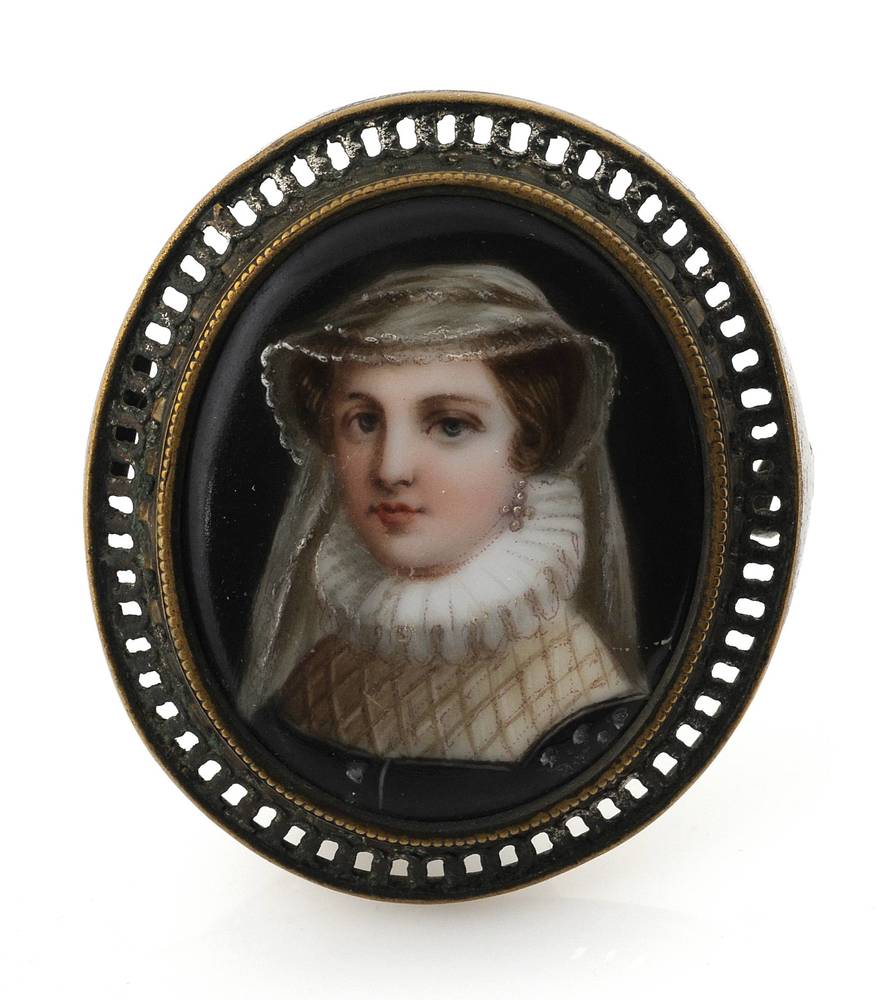 broche van keramiek met medaillon, afbeelding buste ...