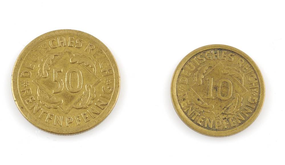 twee munten: 10 en 50 pfennig