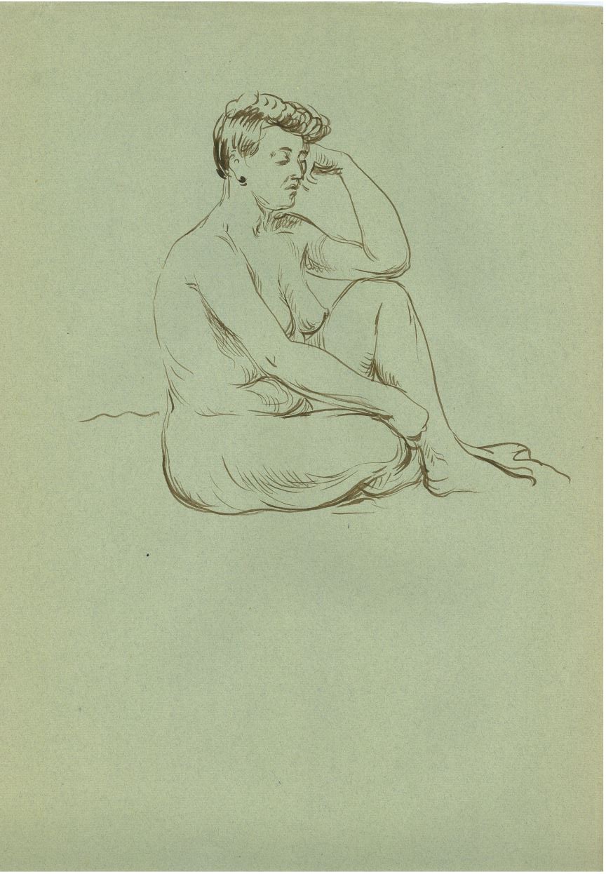 Figuurstudie vrouwelijk naakt (zittend)