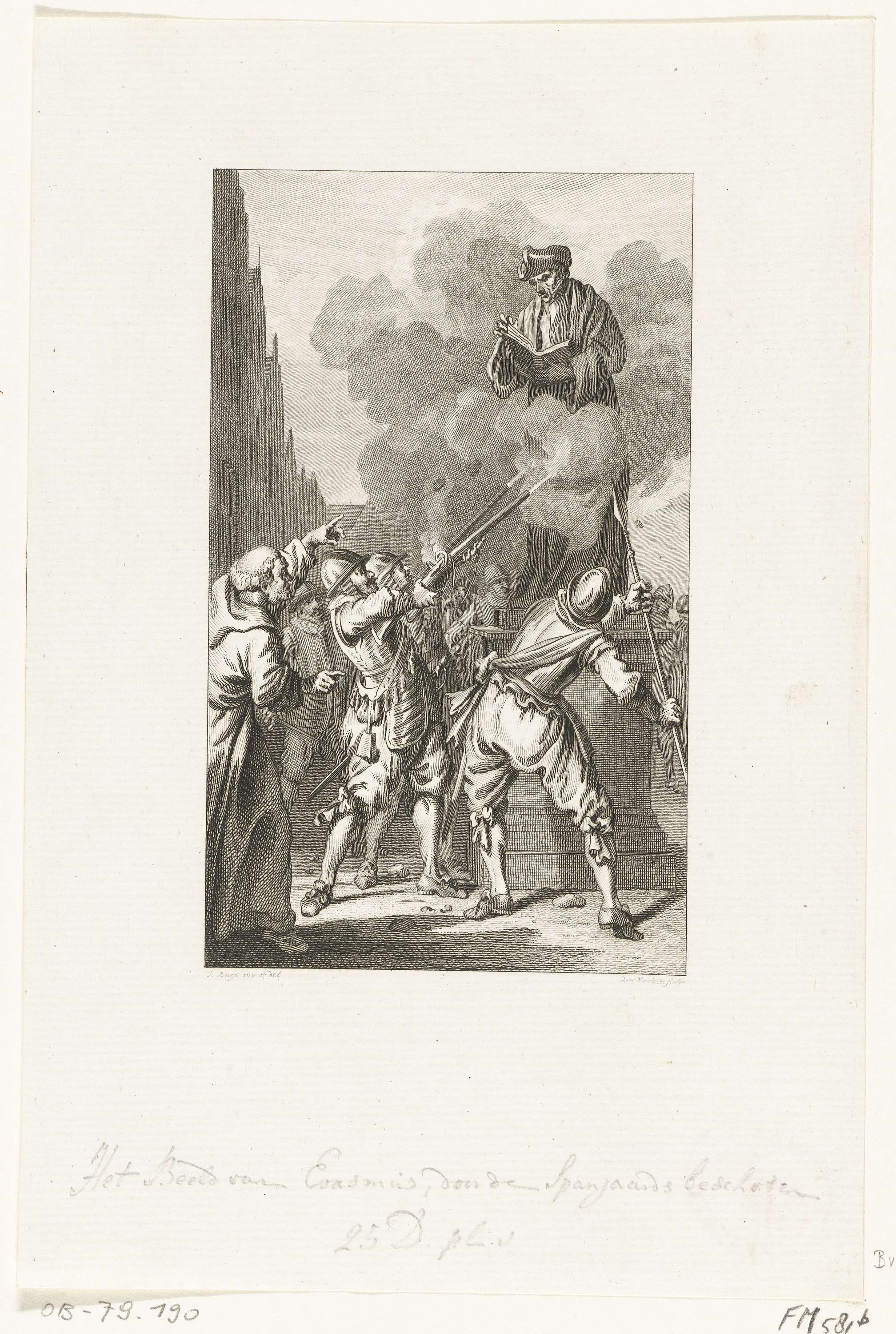 Spaanse soldaten beschieten het beeld van Erasmus, 1572