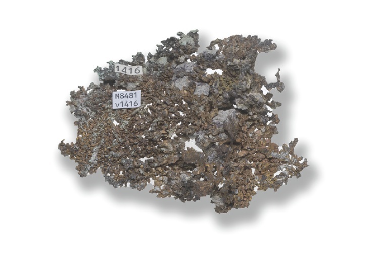 plat handstukje van gedegen Koper (licht dendritisch)