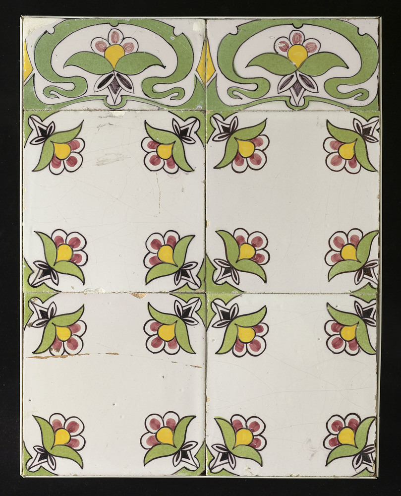 Tegelveld van keramiek met tinglazuur, voorstellende...
