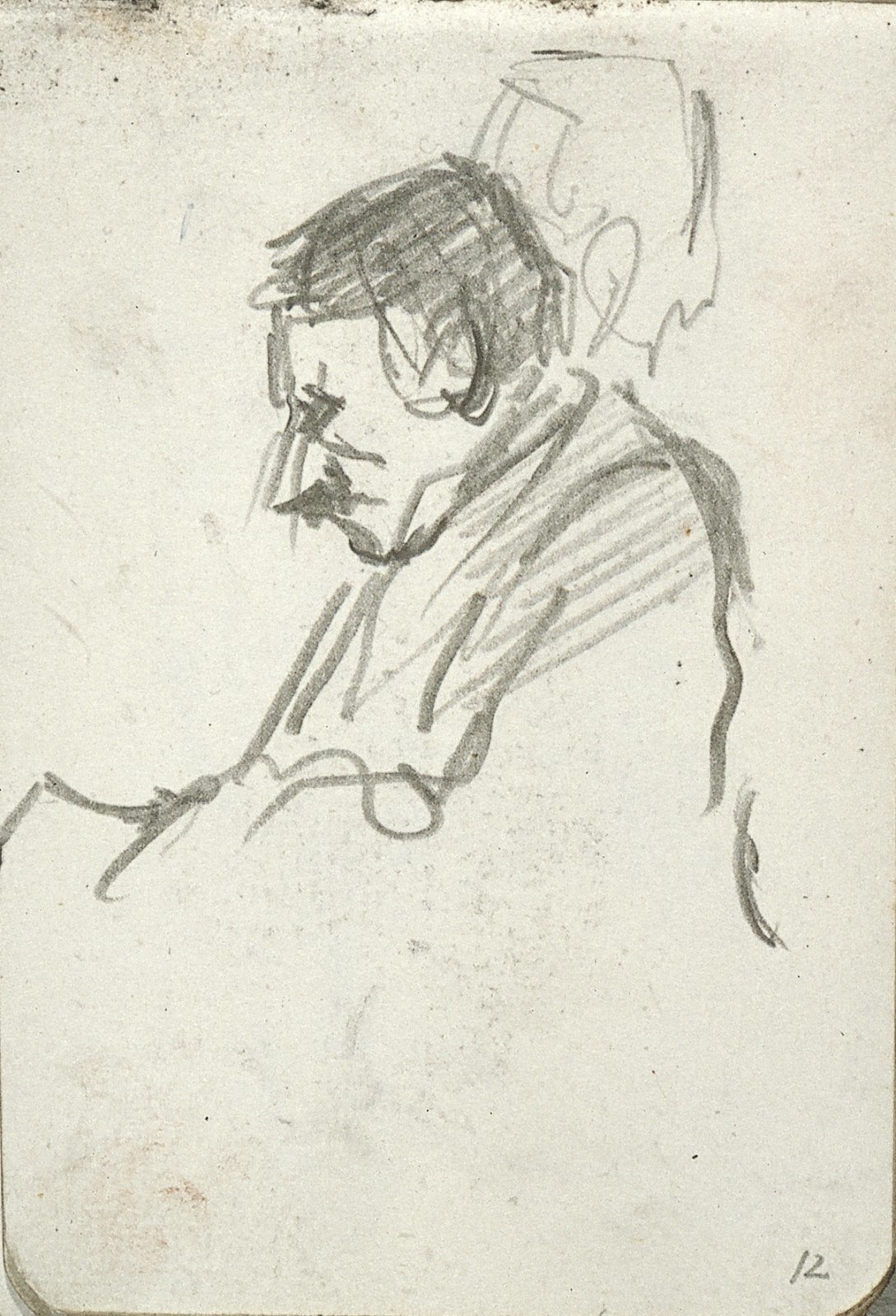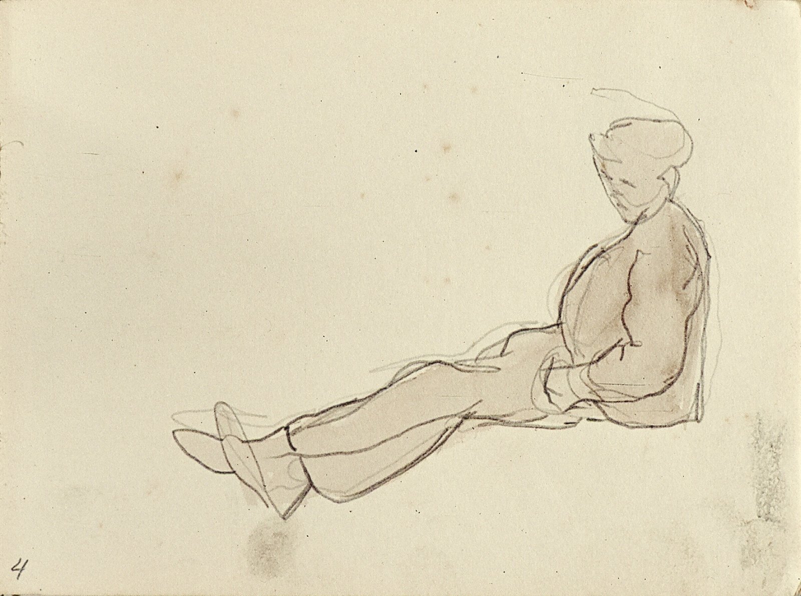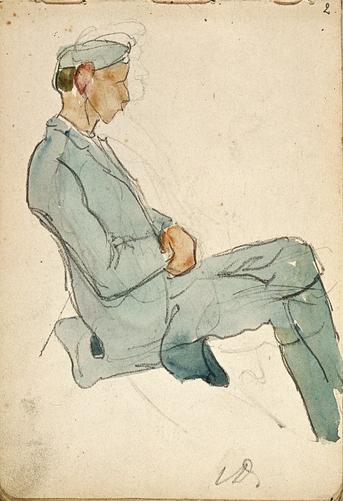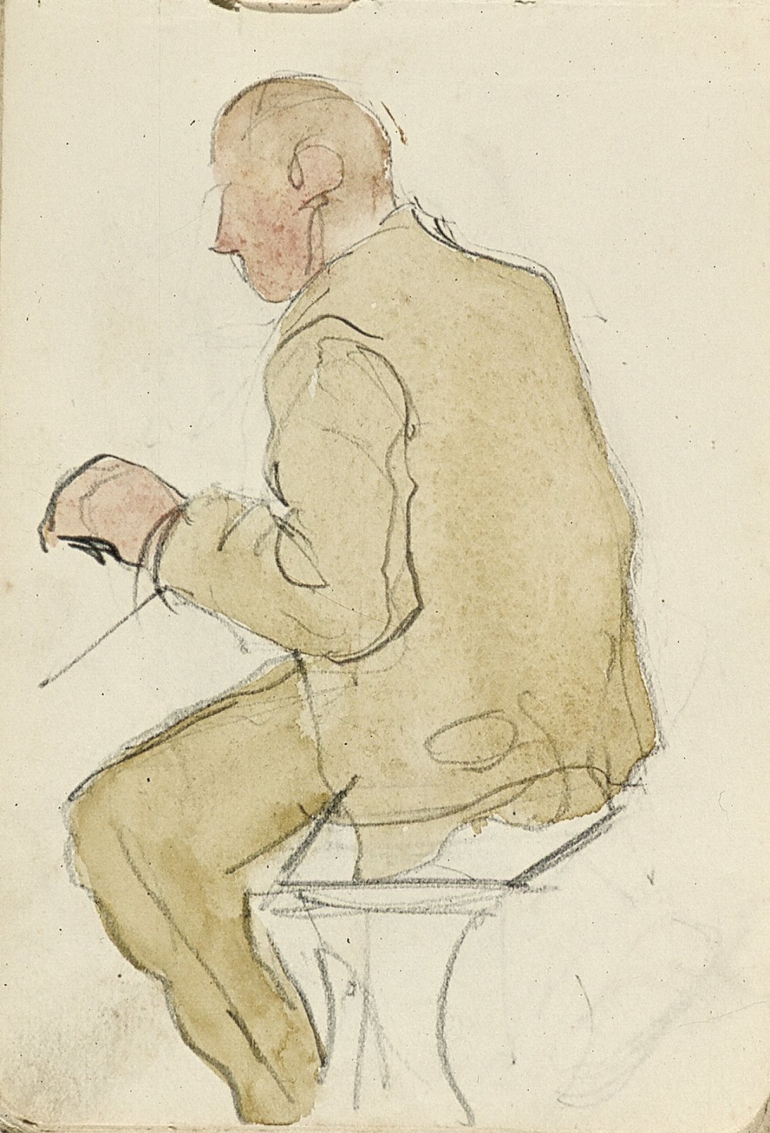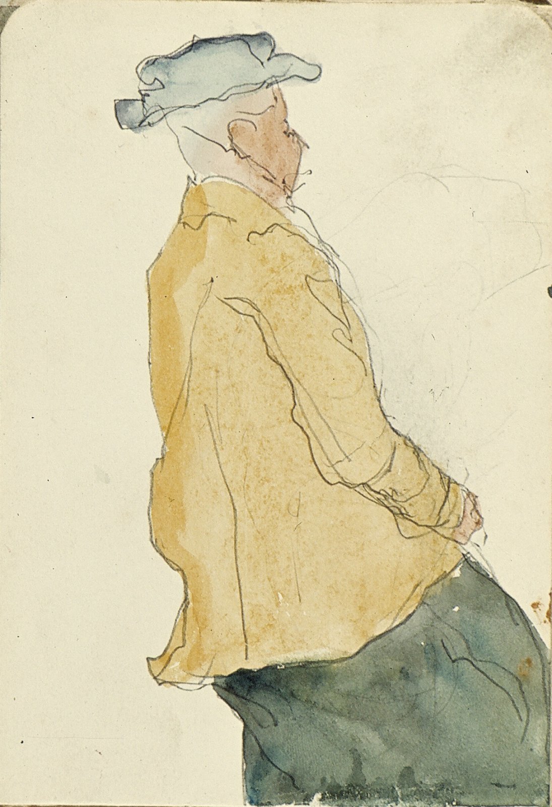Zittende man met pet en profil