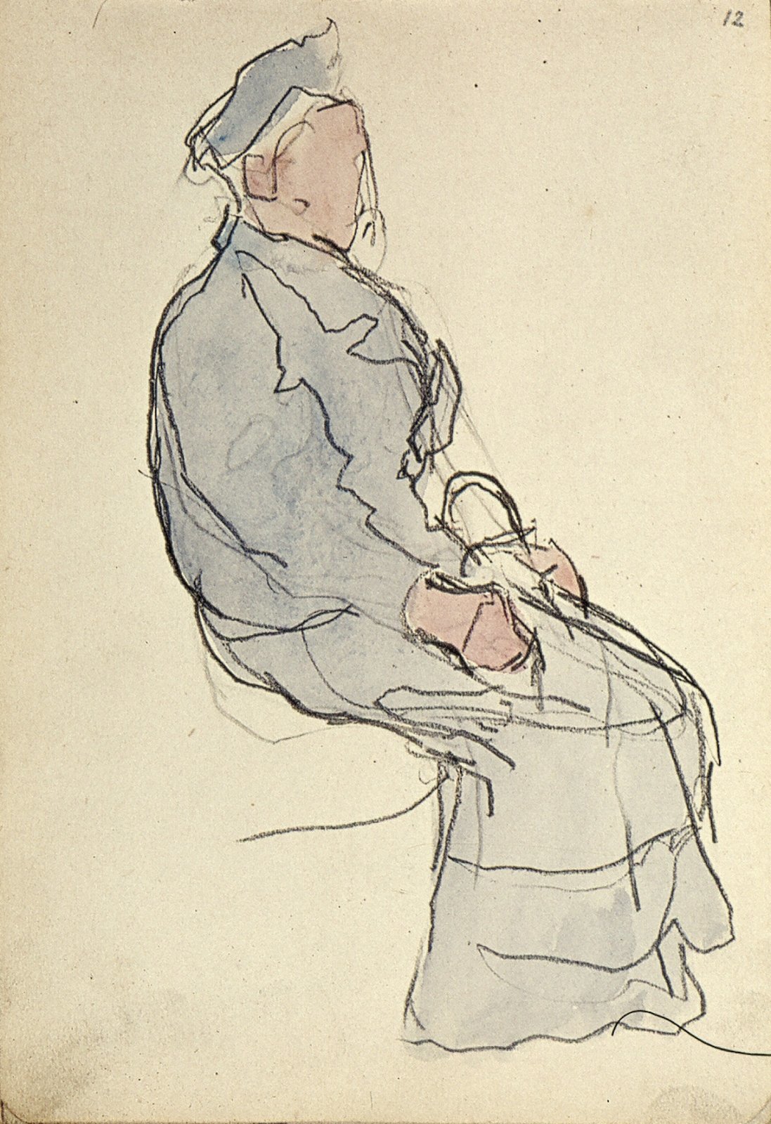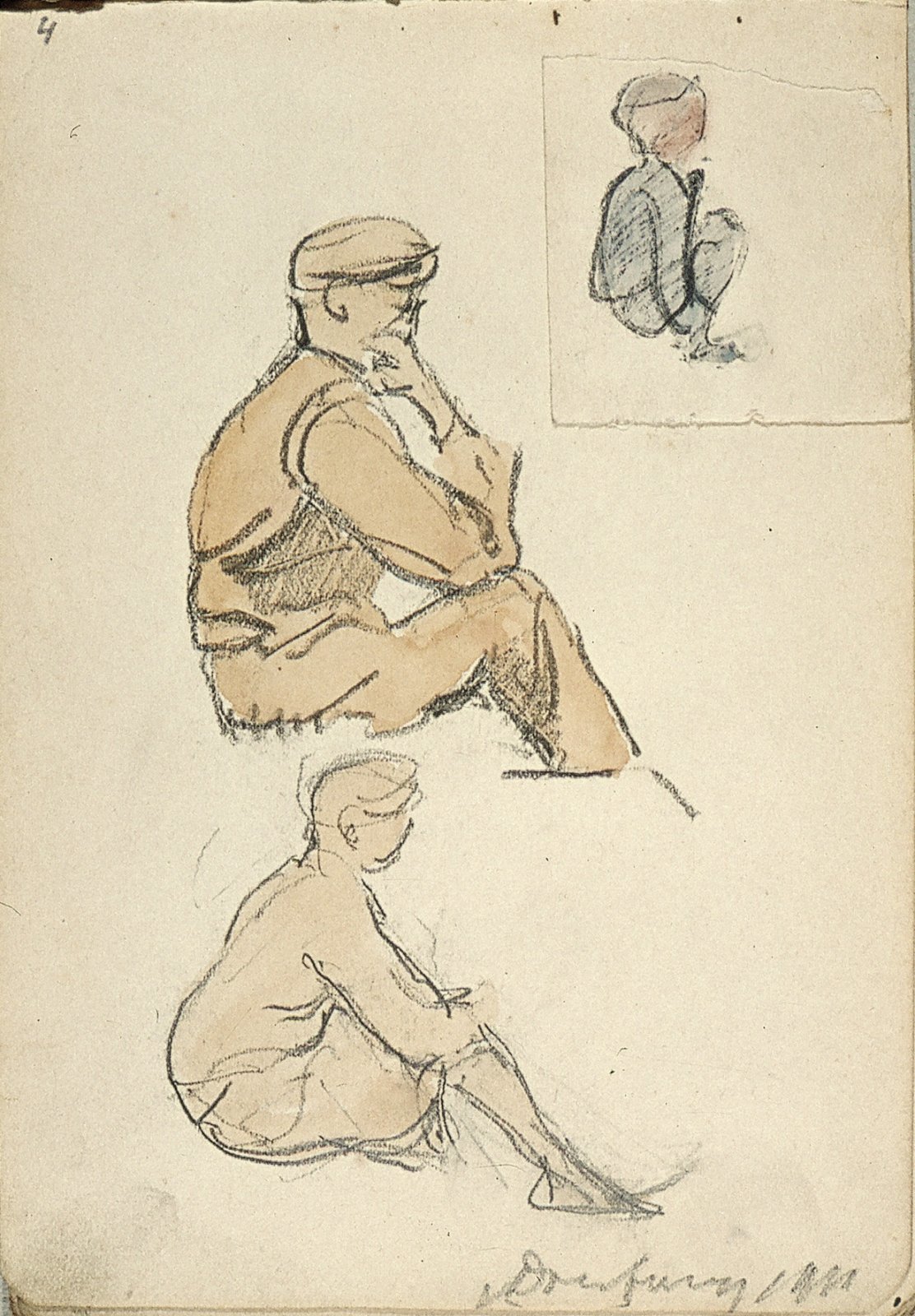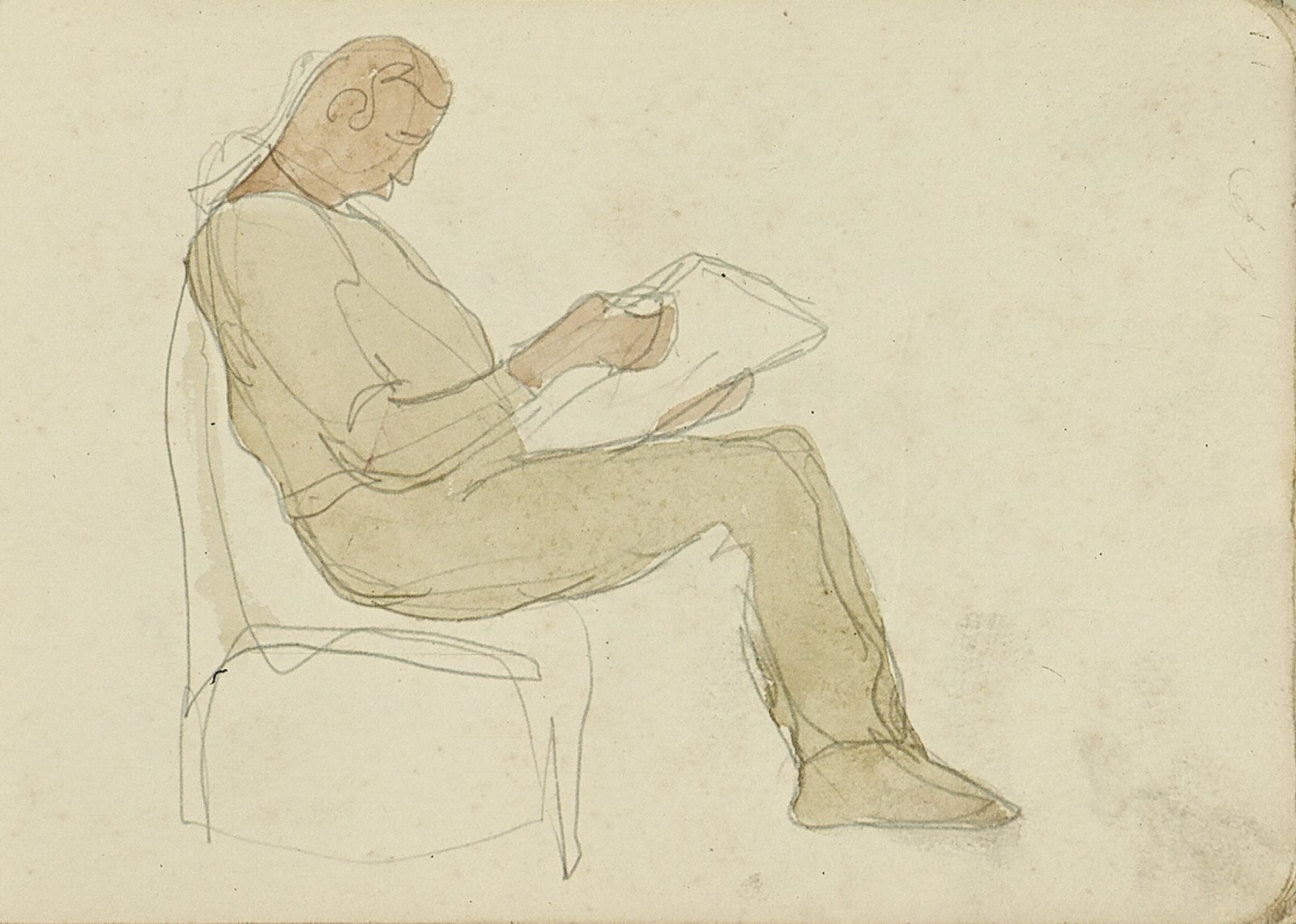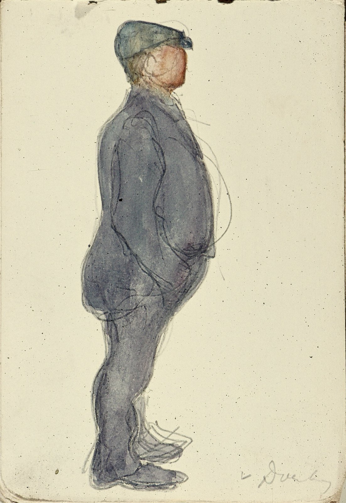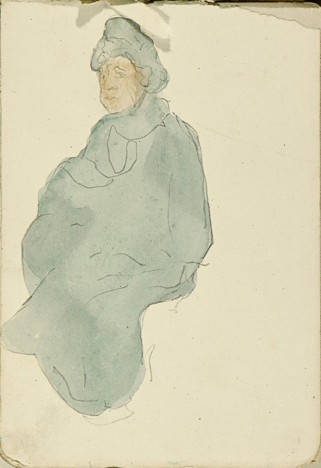Zittende man met pet en profil