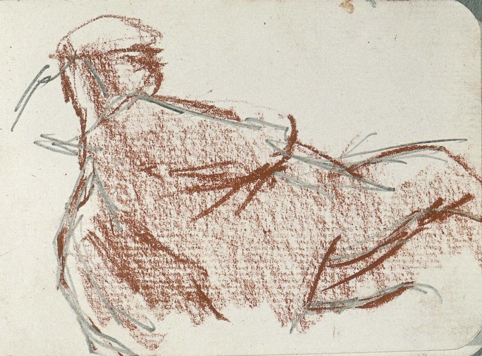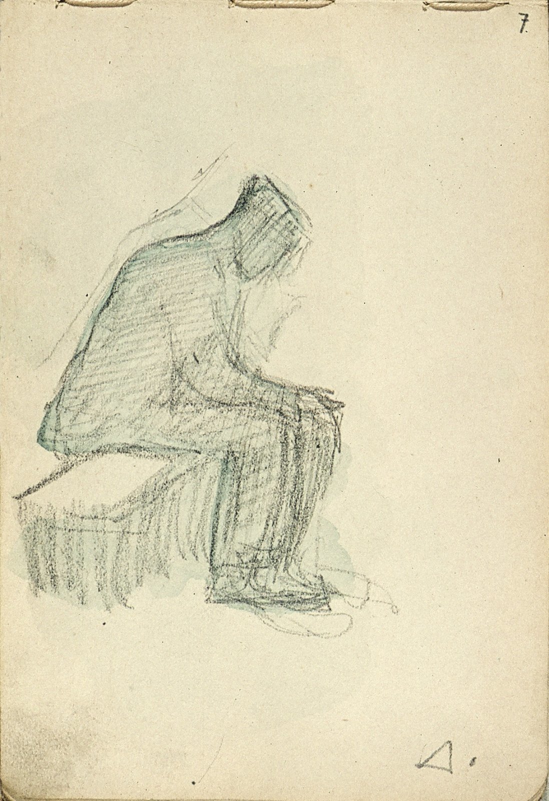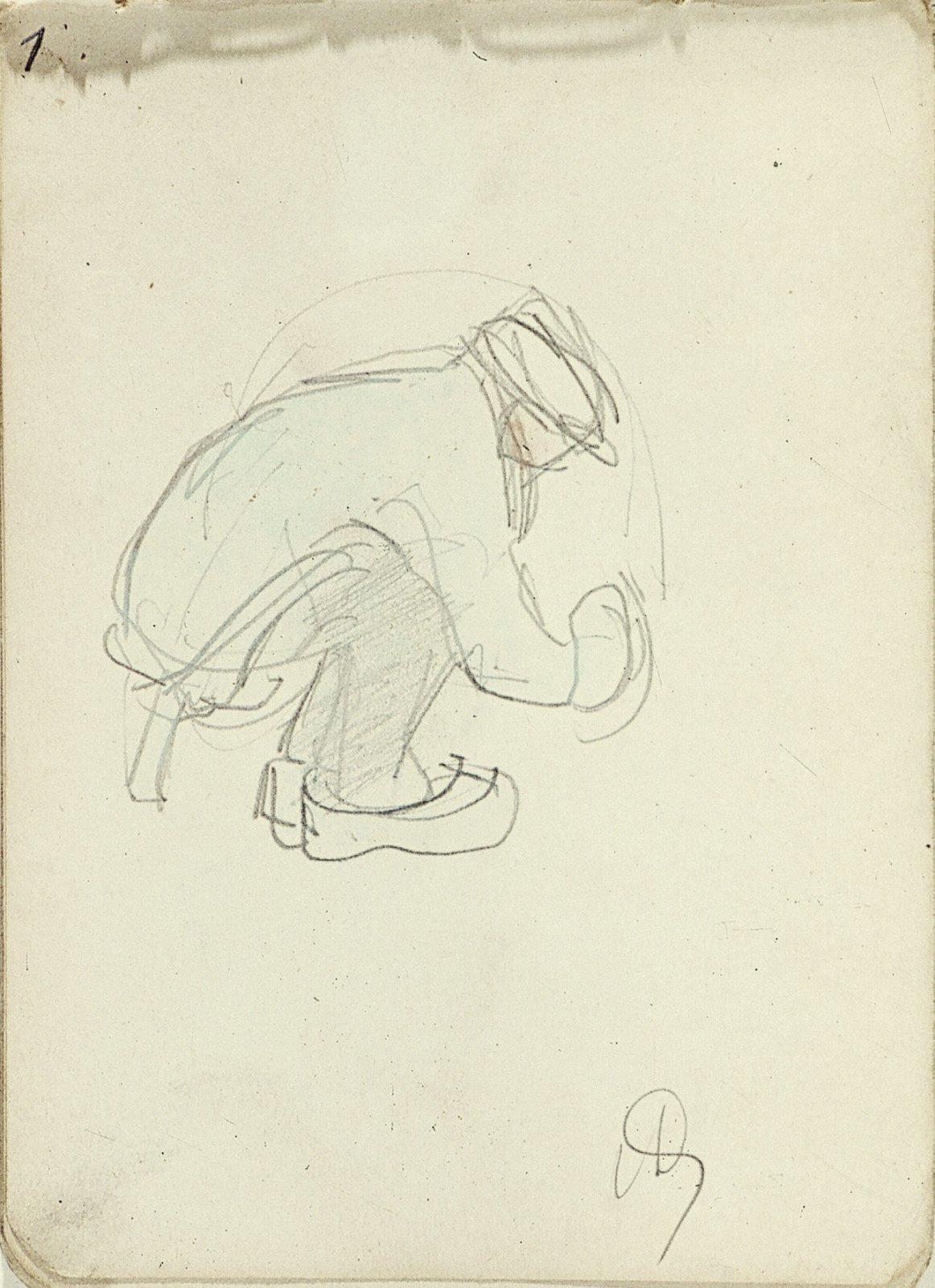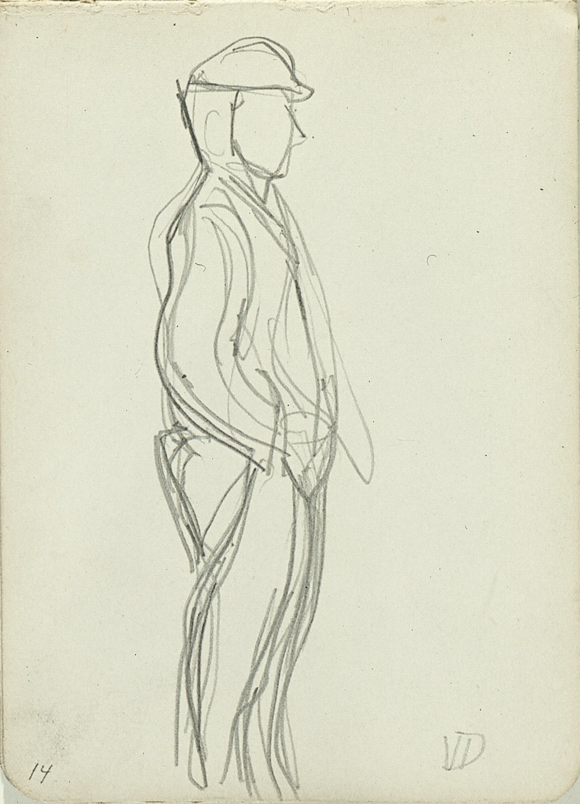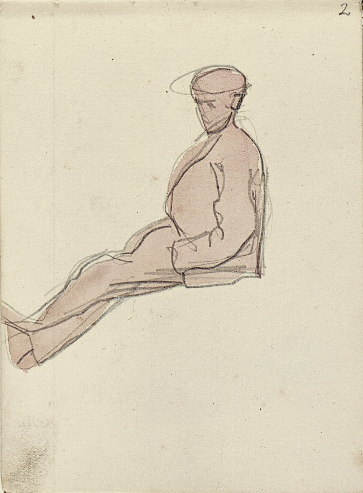 Zittende man met pet en profil