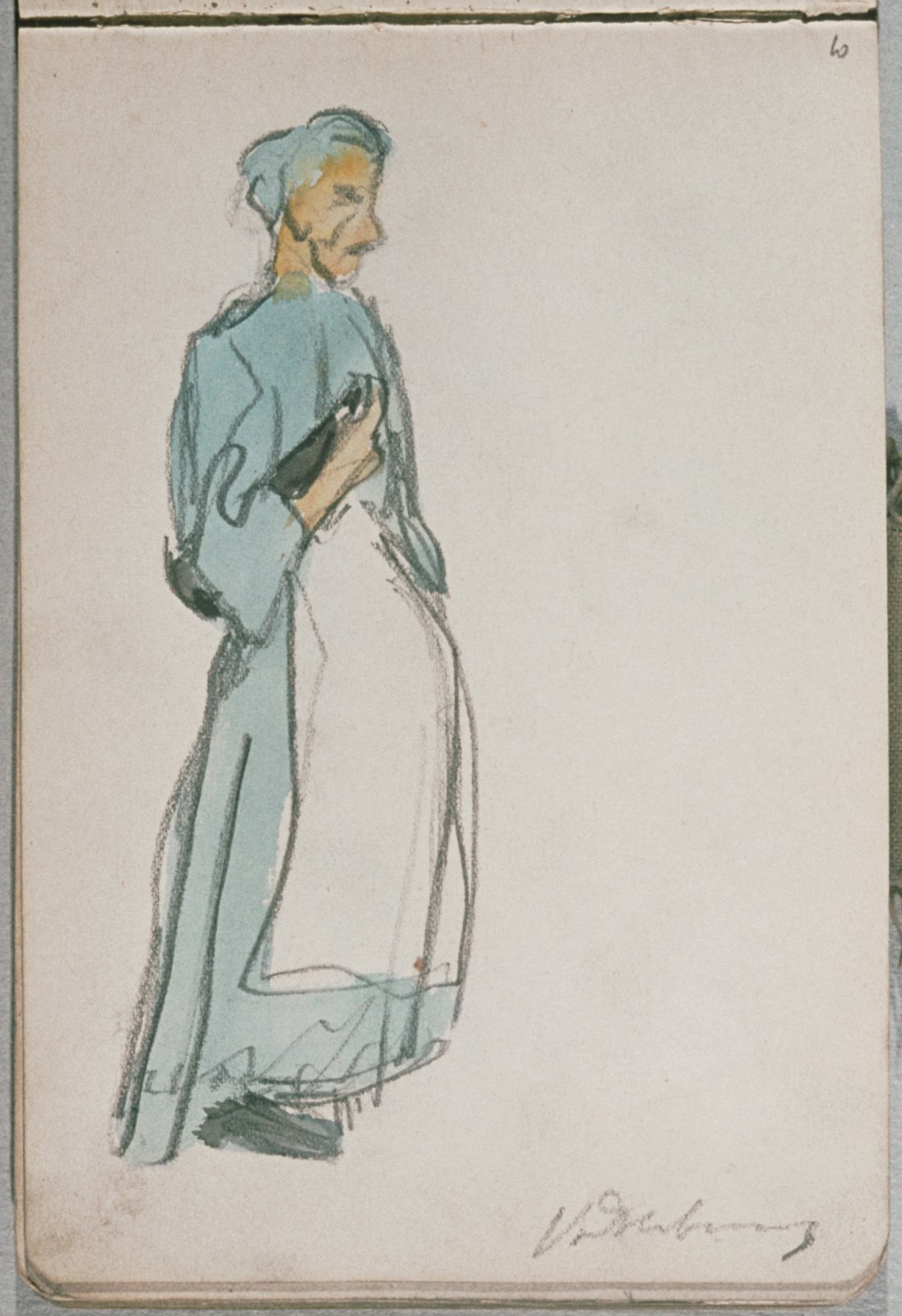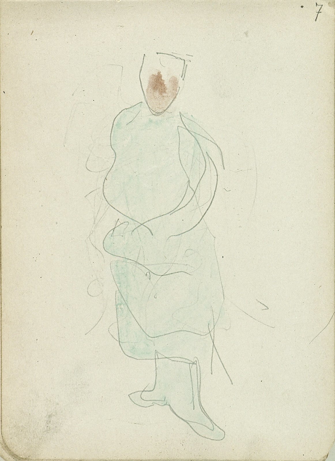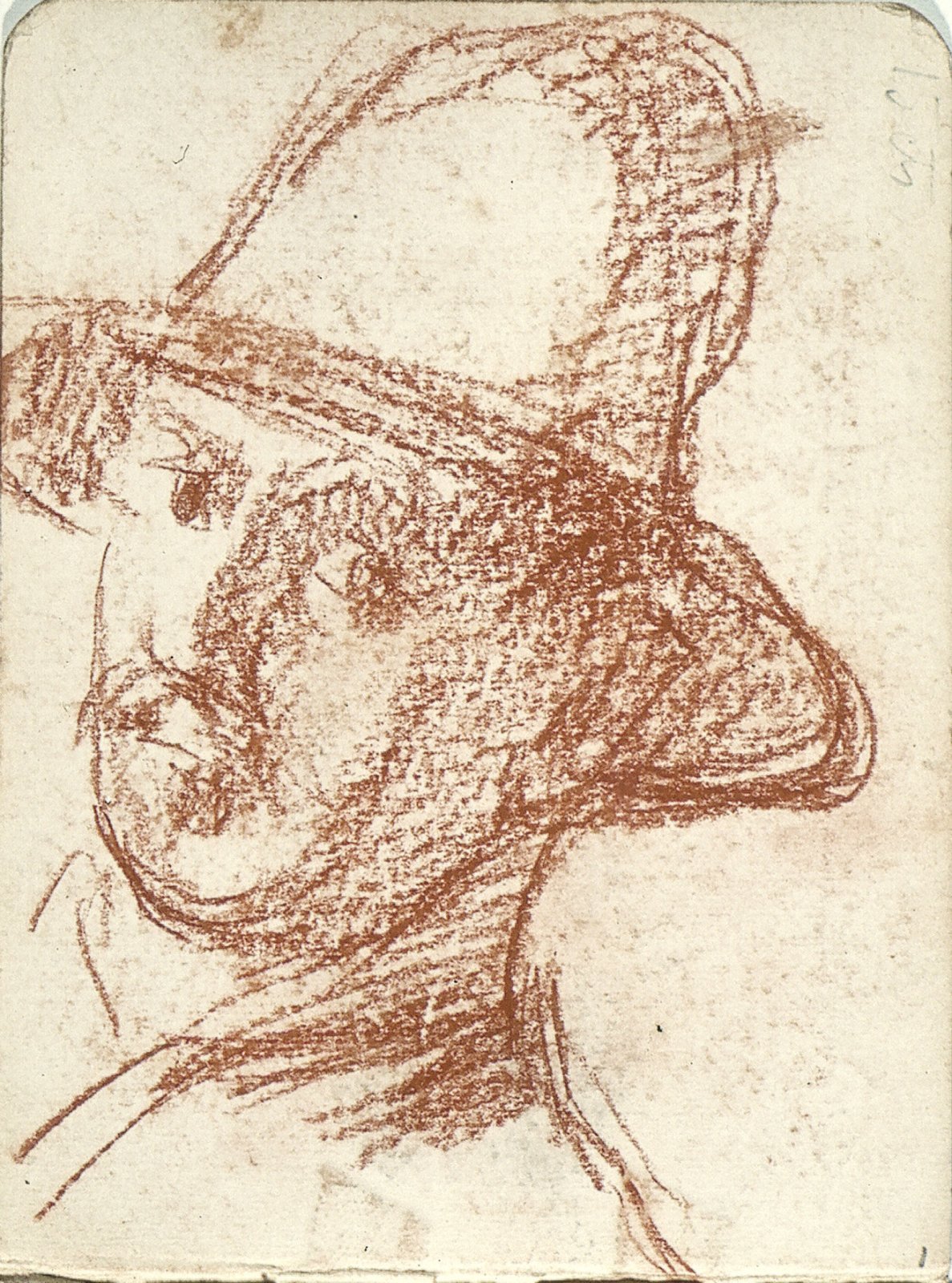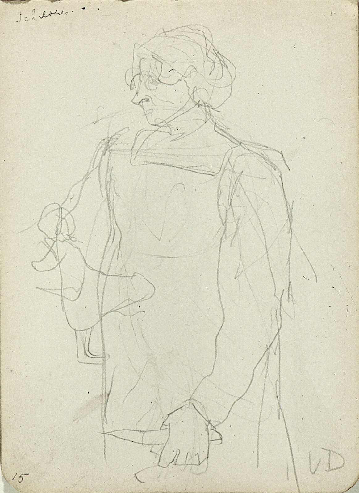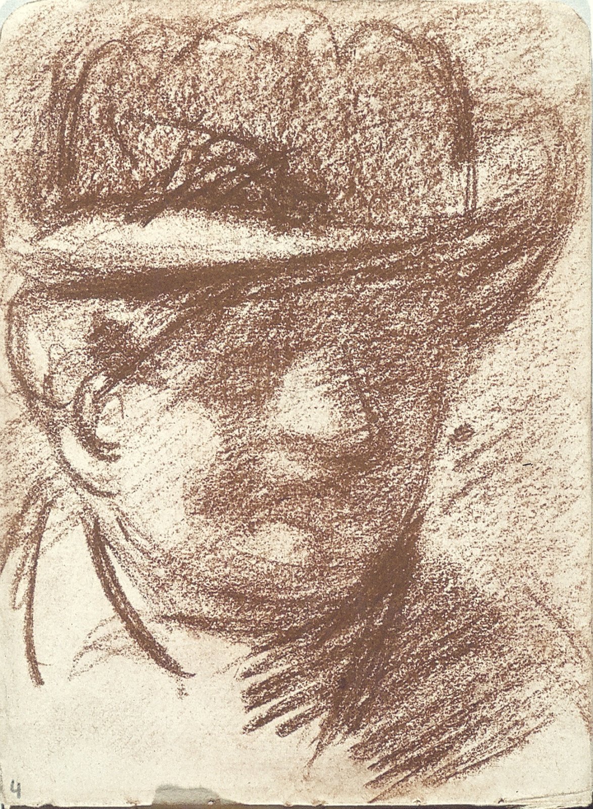 Zittende man met pet en profil