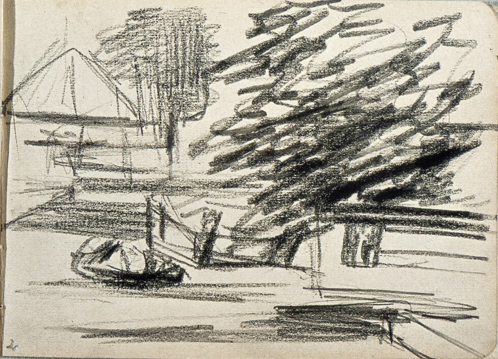 Landschap met bootje, boom en boerderij