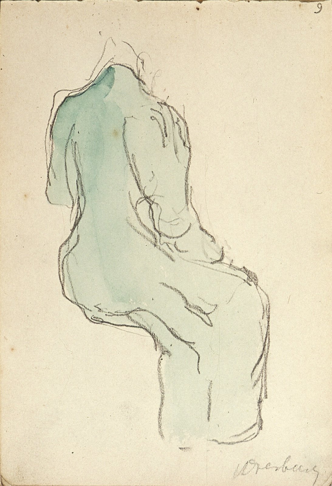 Zittende vrouw, op de rug gezien