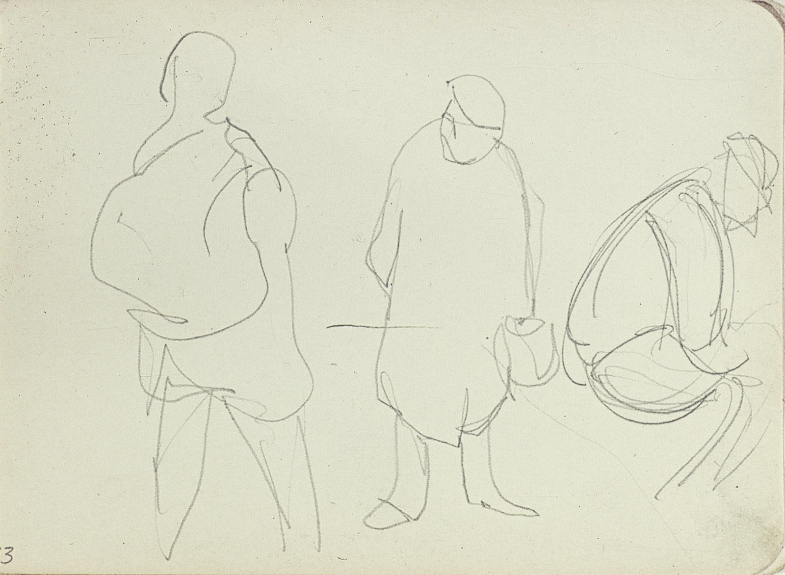 Een lopende, een staande en een zittende figuur