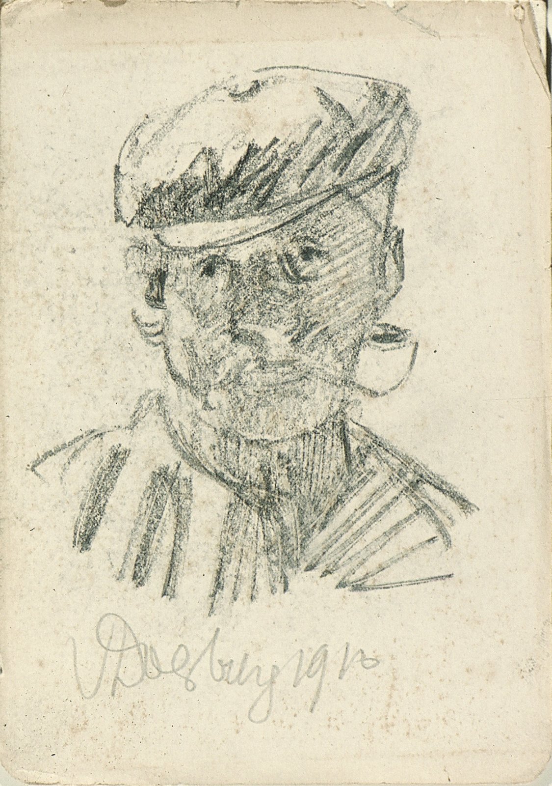 Portret van een man met pet en pijp