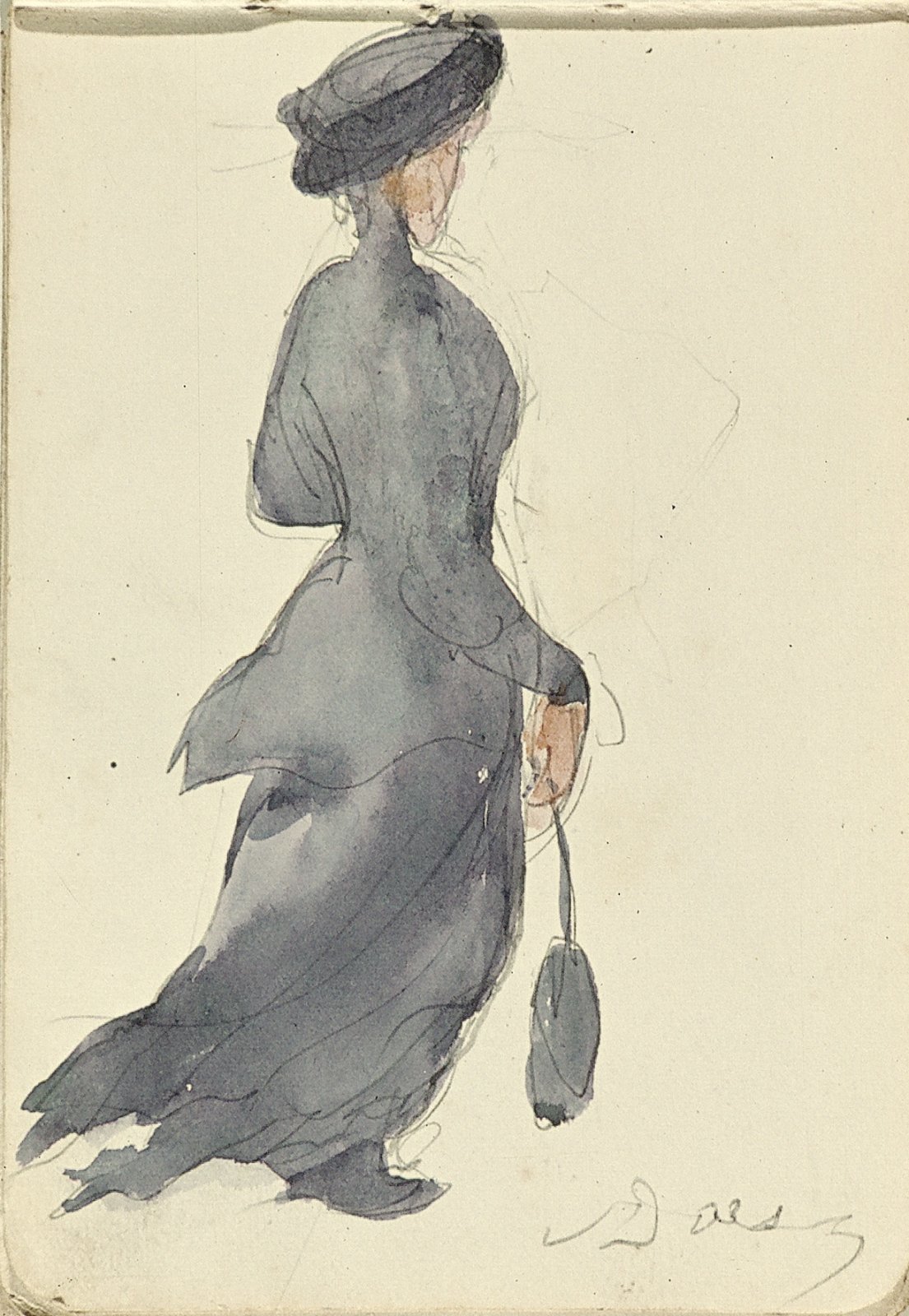 Zittende vrouw met hoed en handtas