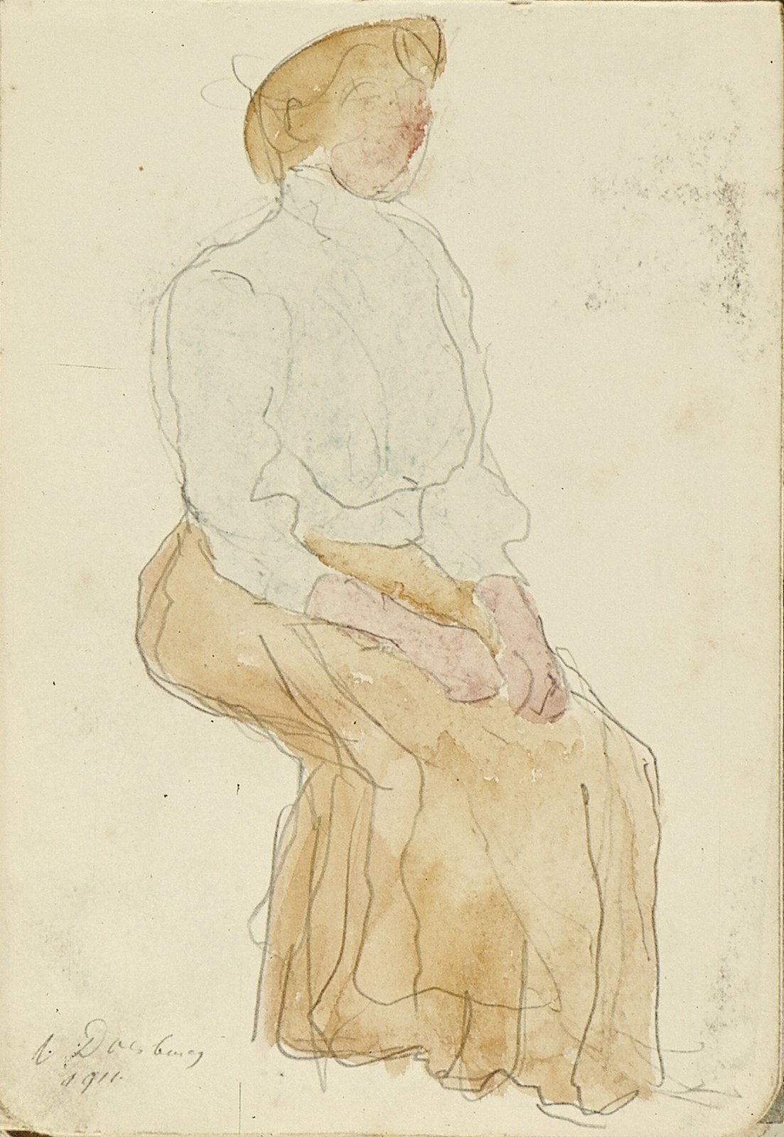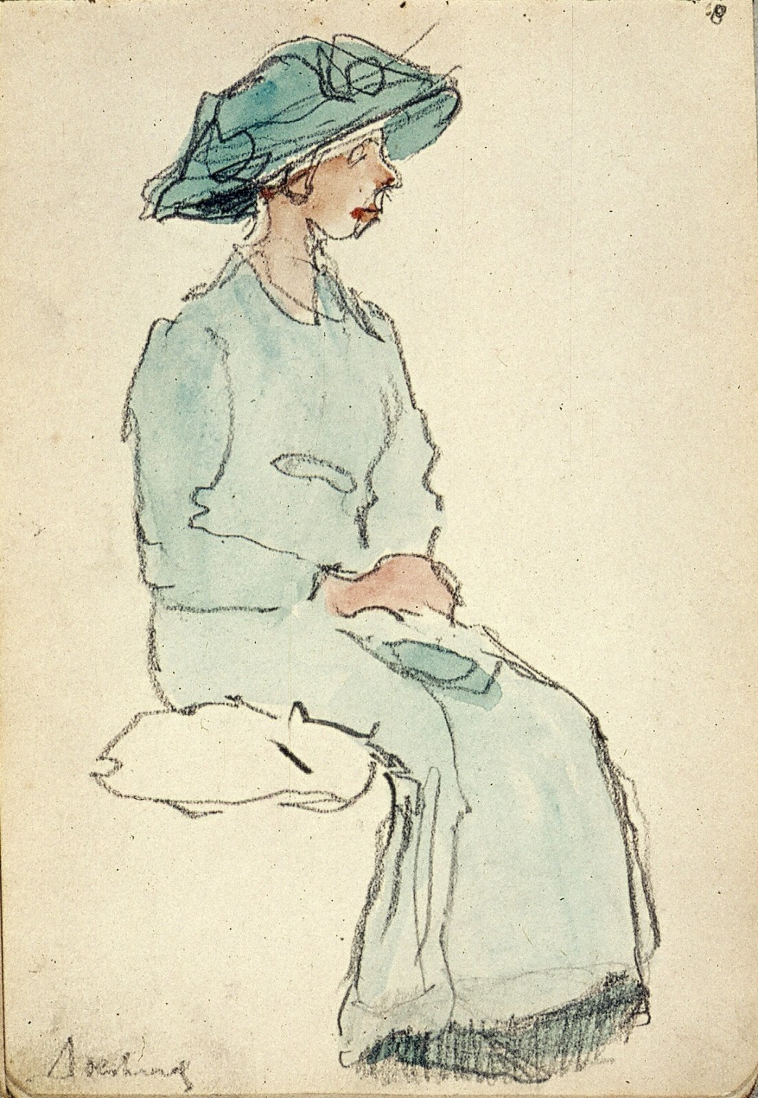 Zittende vrouw met hoed