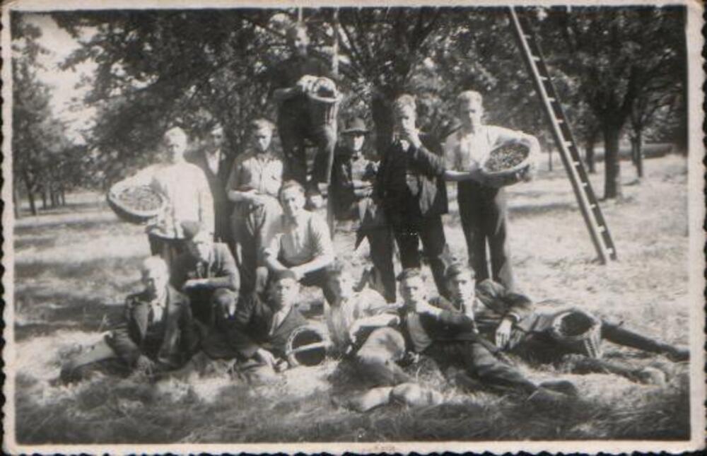 Kersenplukkers in de bongerd van de familie Pansier