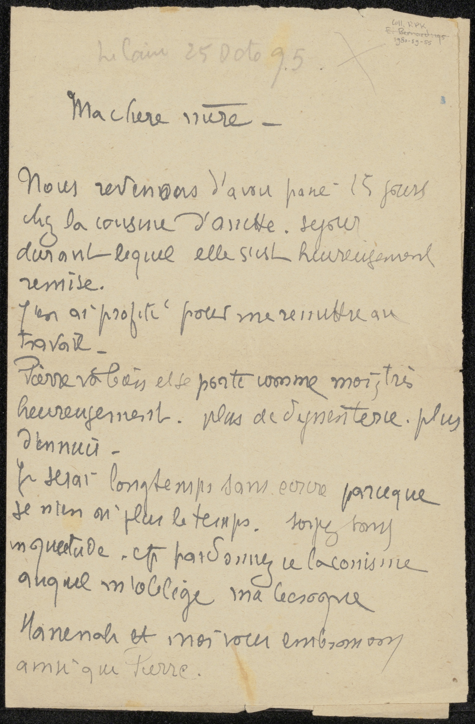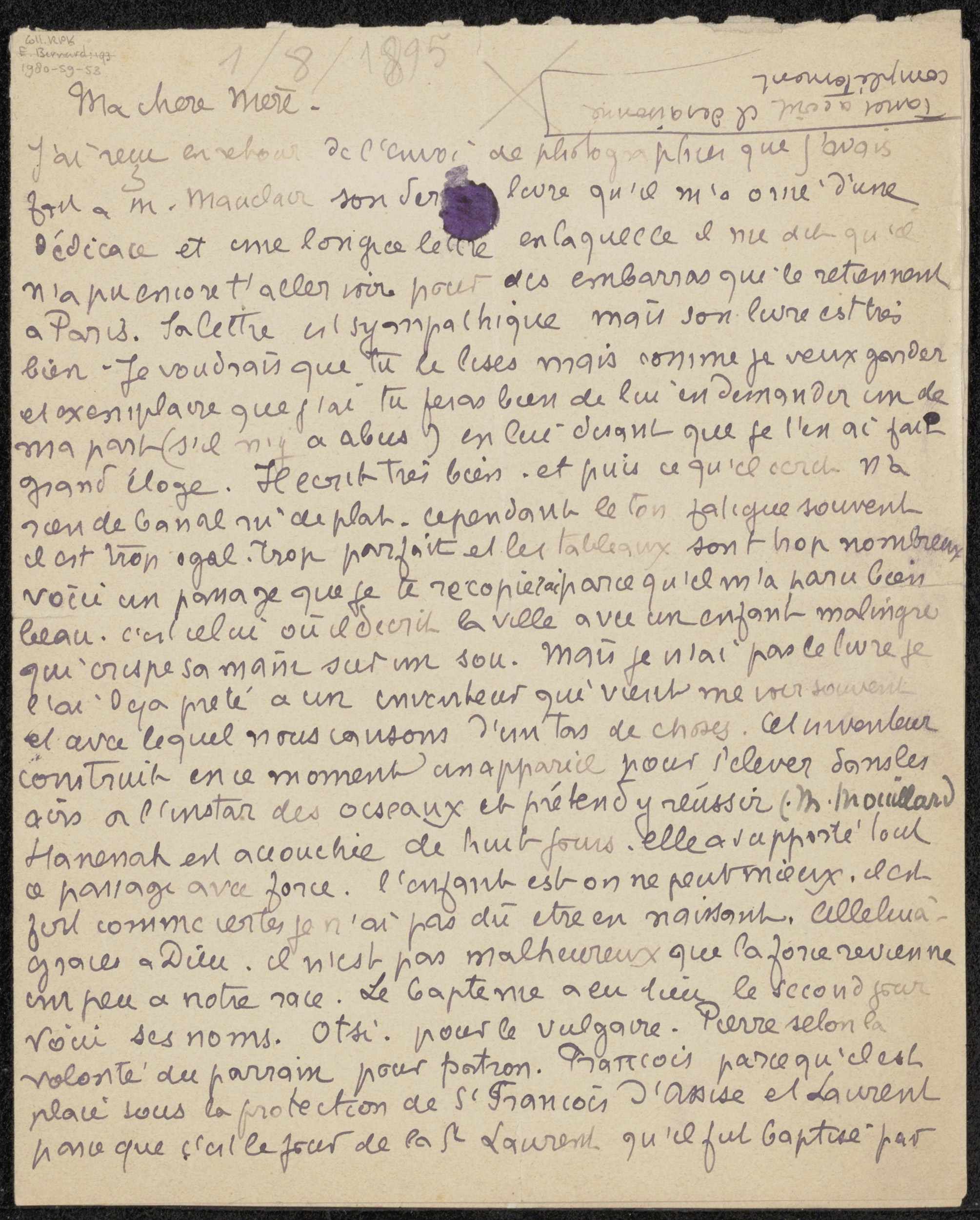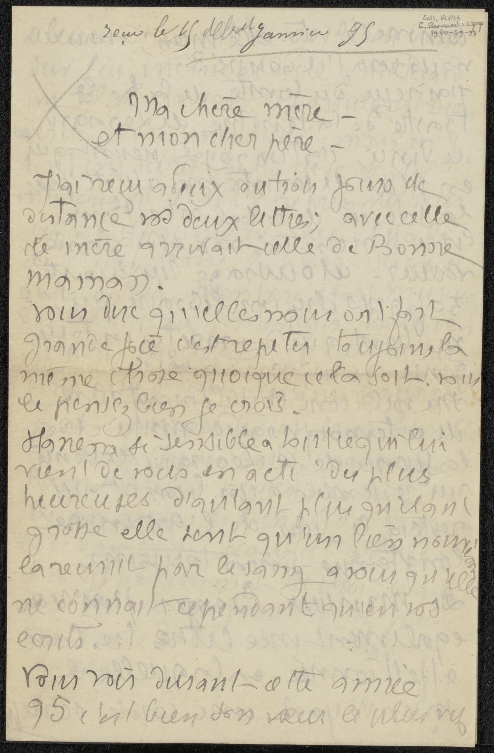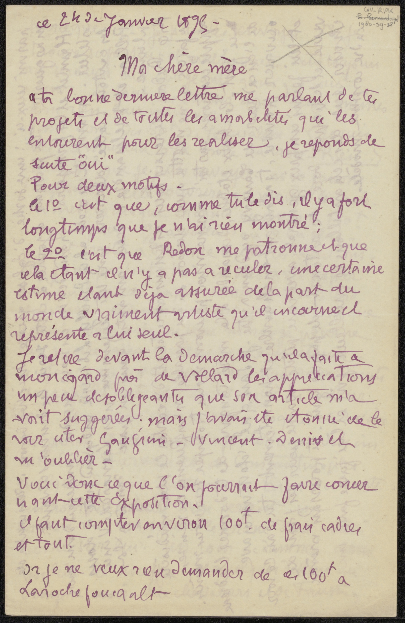 Brief aan Emile Ernest Bernard en Héloïse Bernard-Bodin
