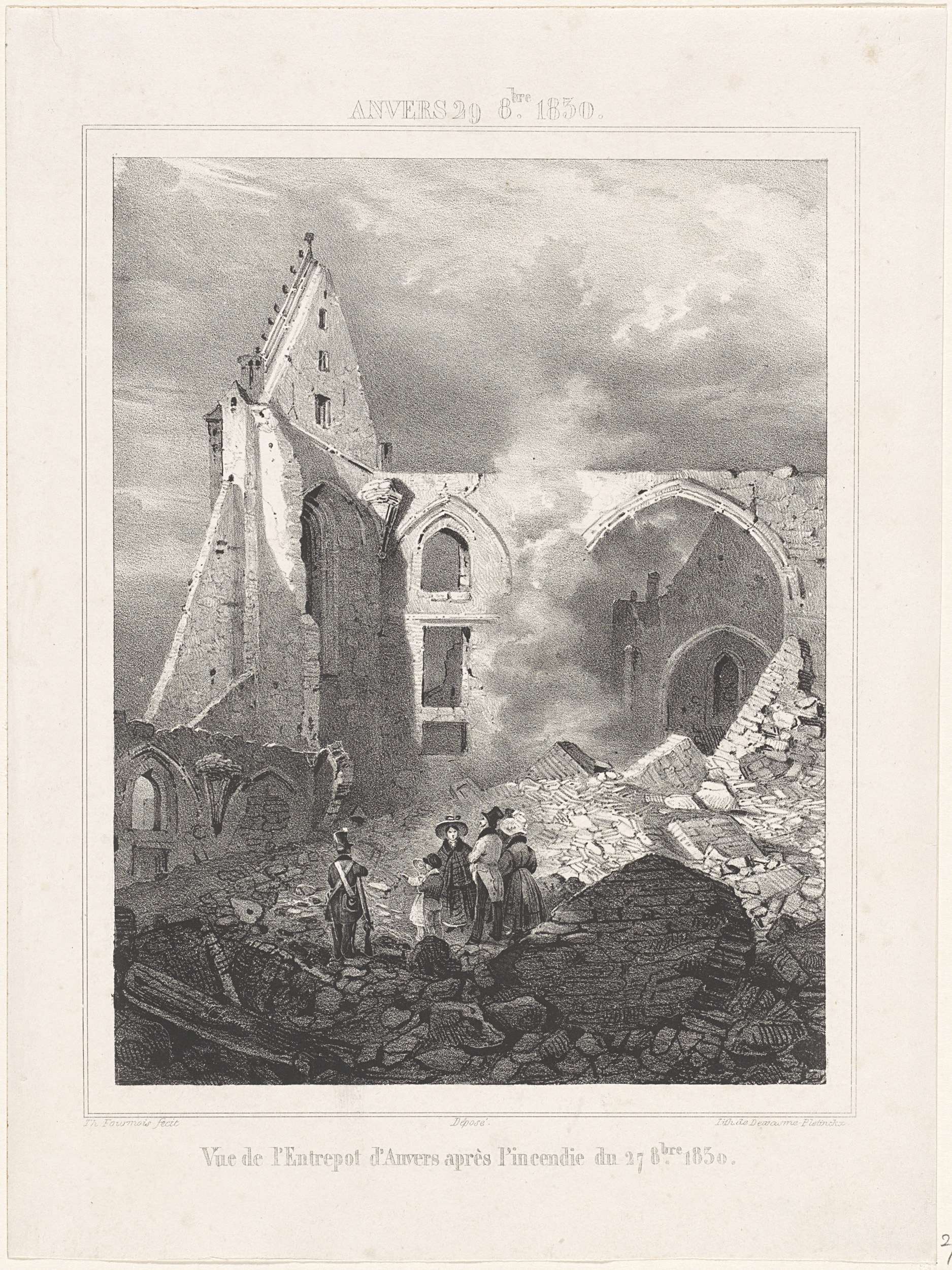 Ruïnes van het entrepot te Antwerpen, 1830