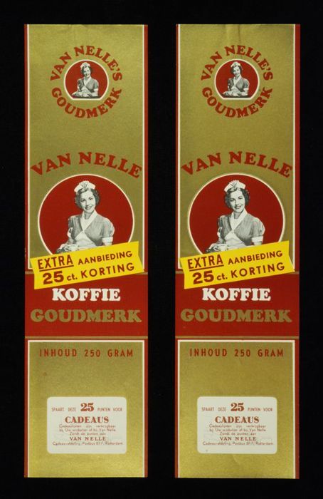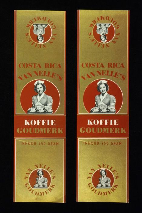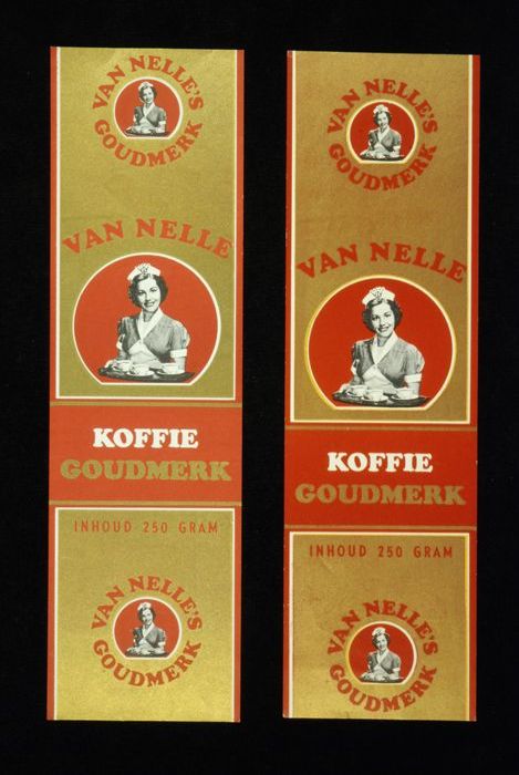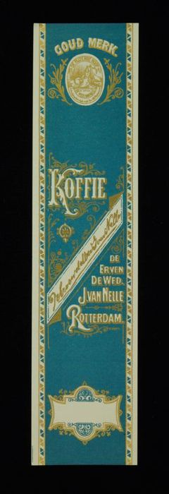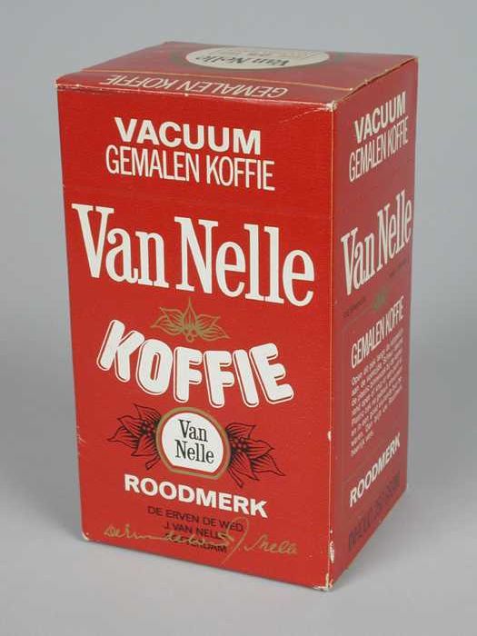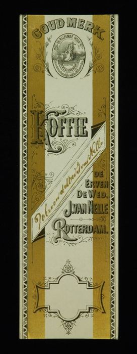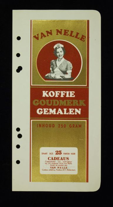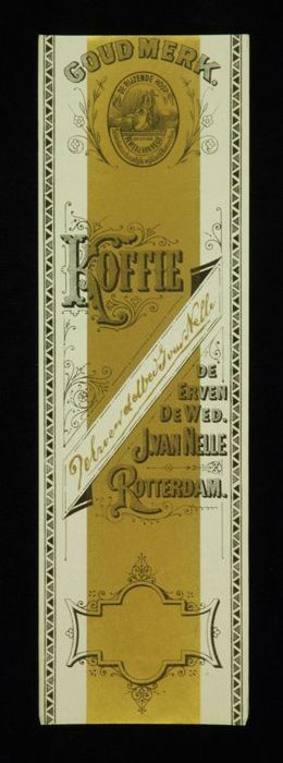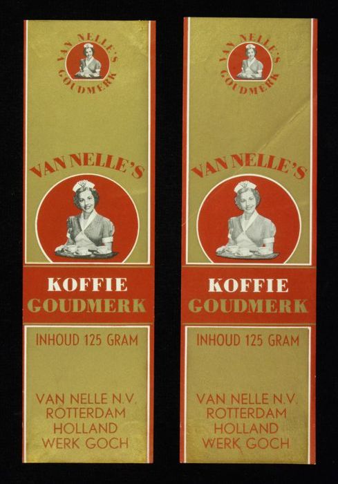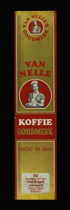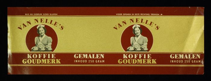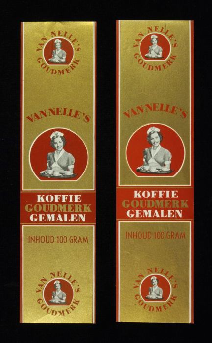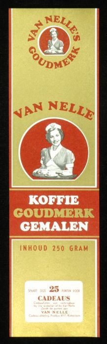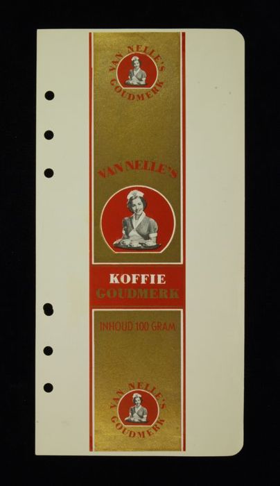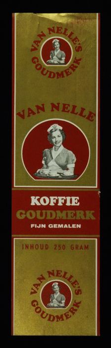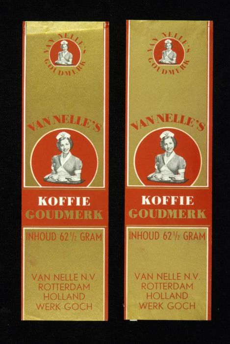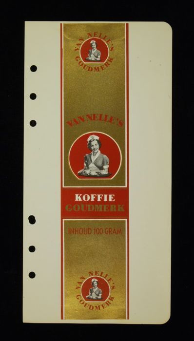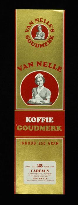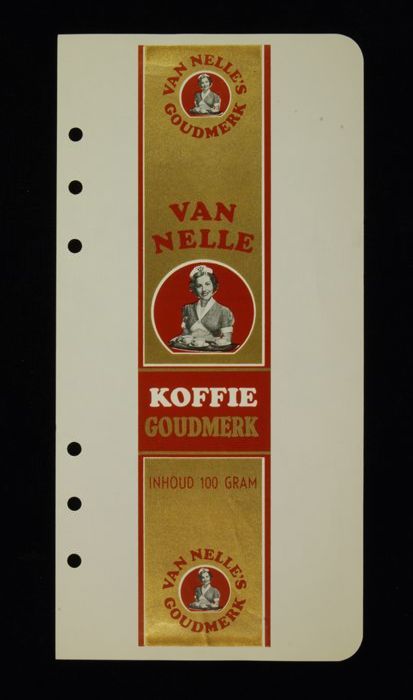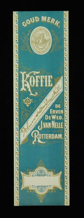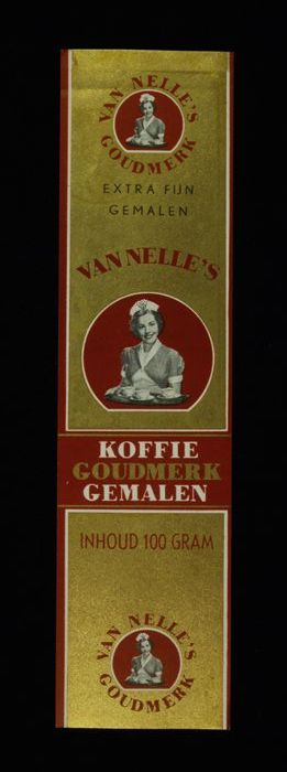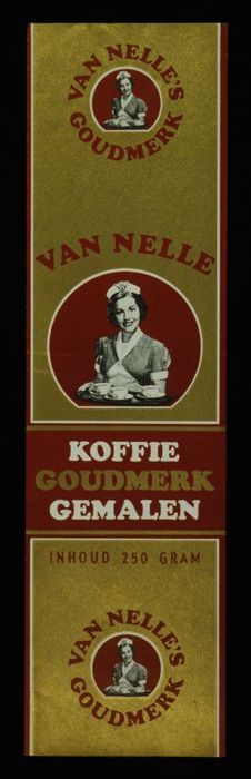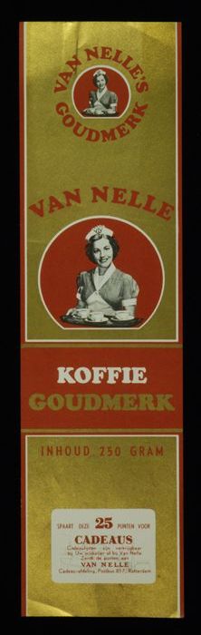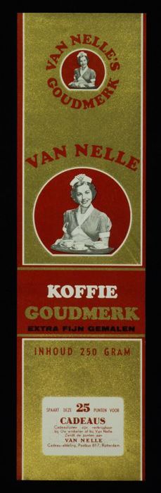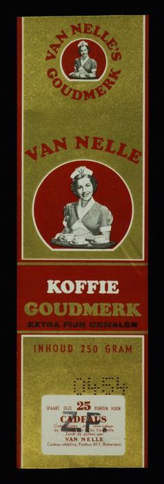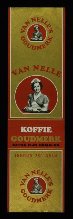 Wit papieren label VAN NELLE ROODMERK KOFFIE, met ee...