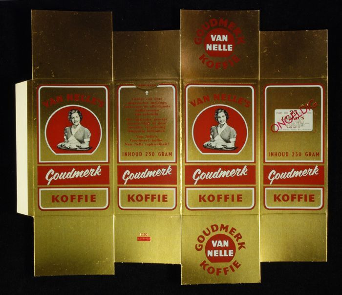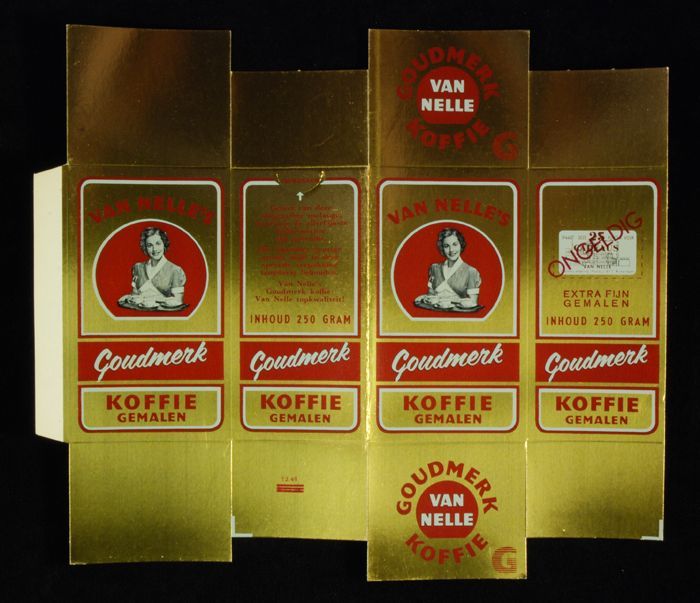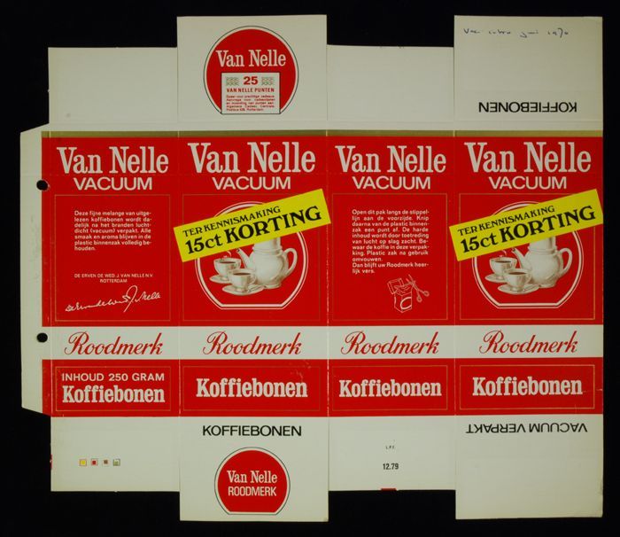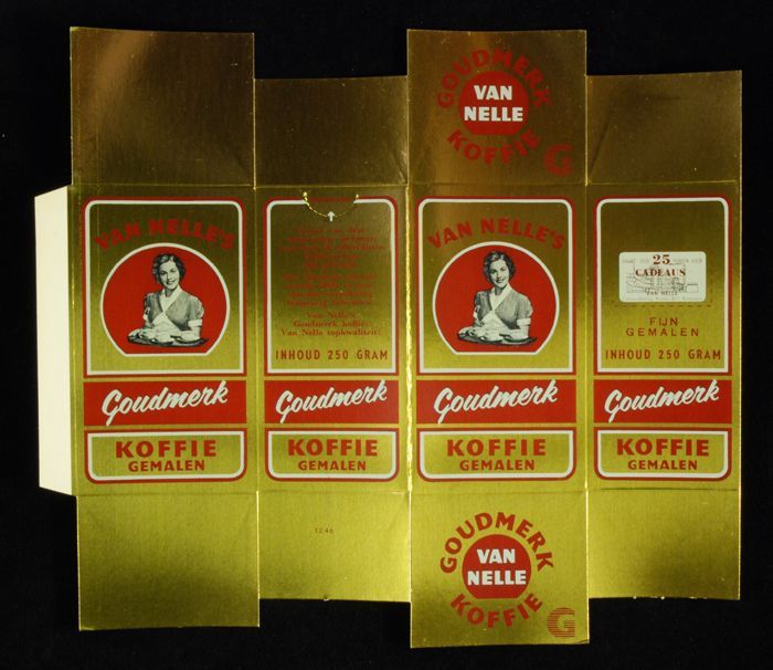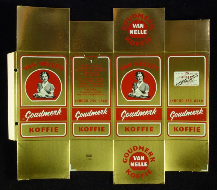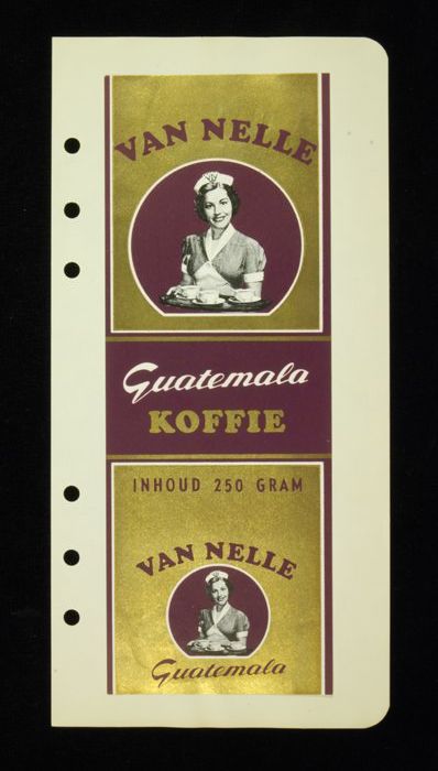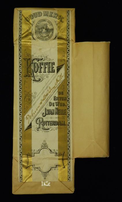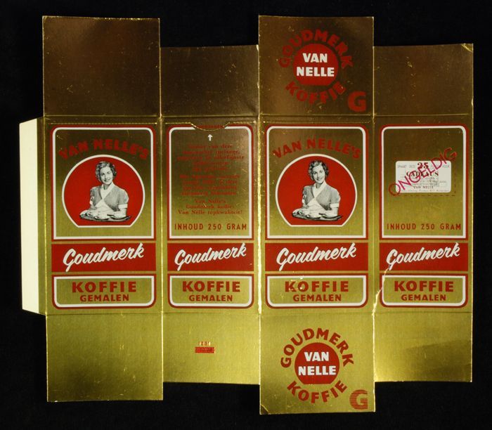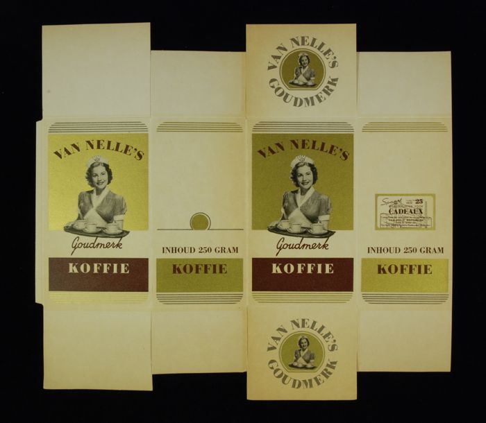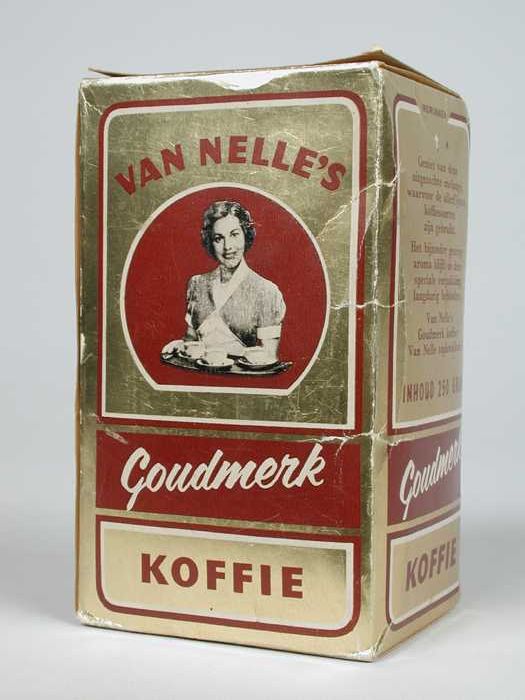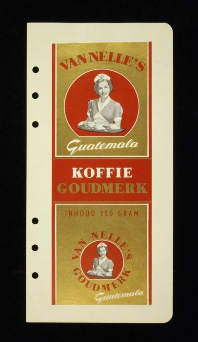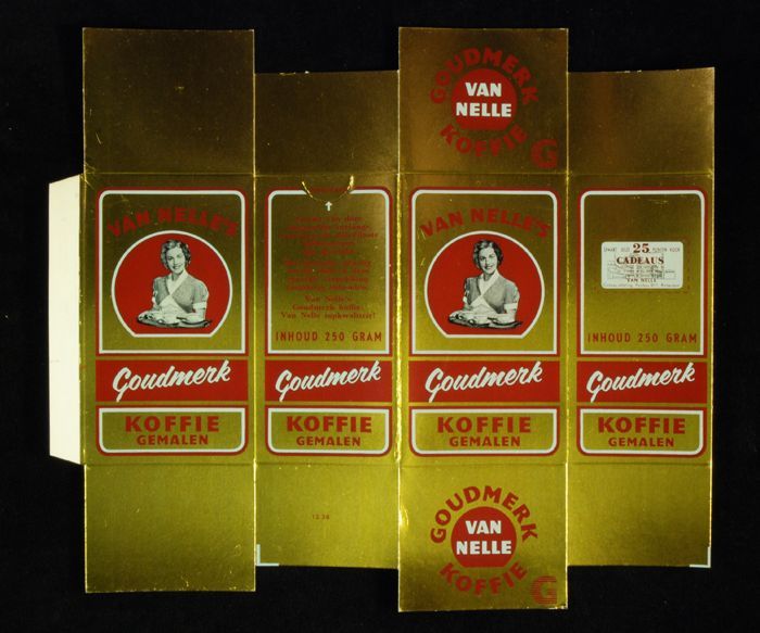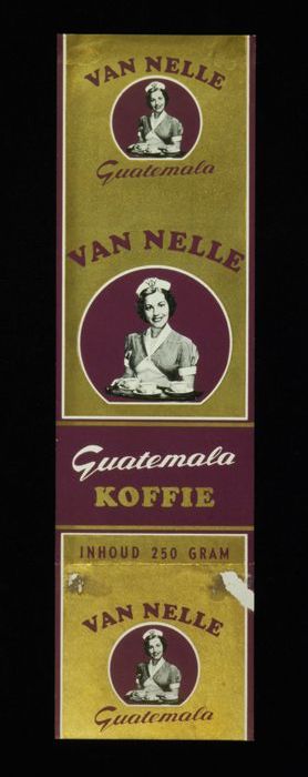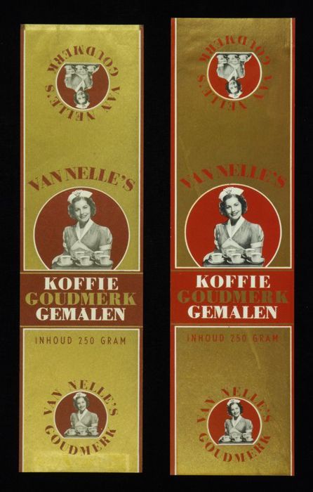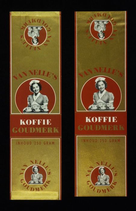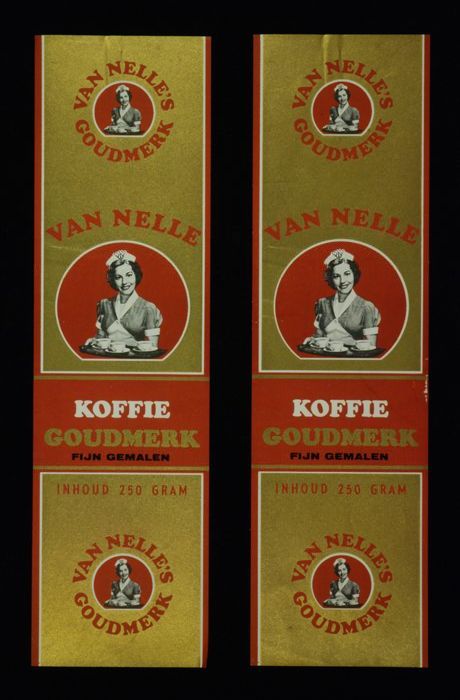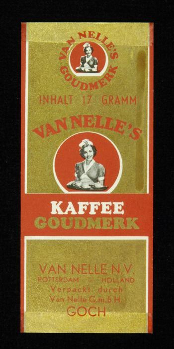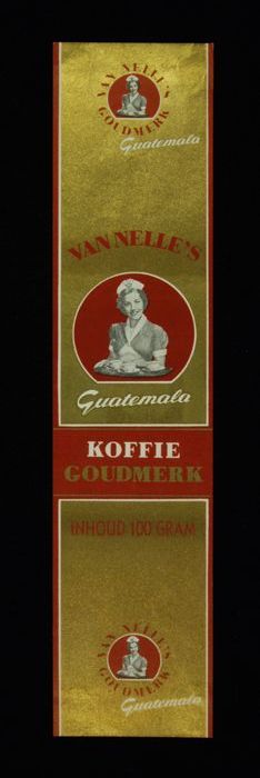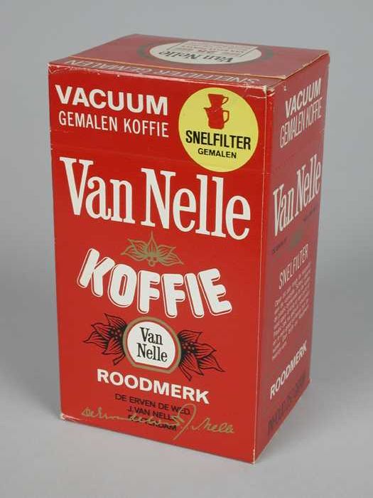 Wit papieren label VAN NELLE ROODMERK KOFFIE, met ee...
