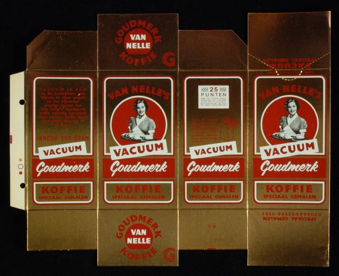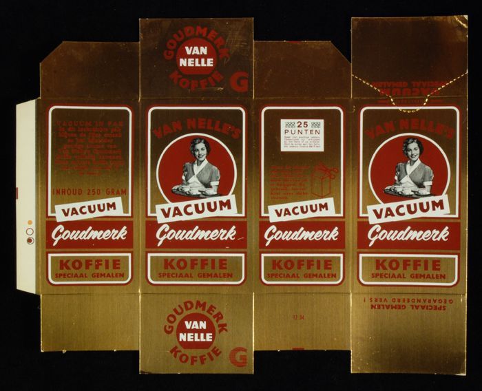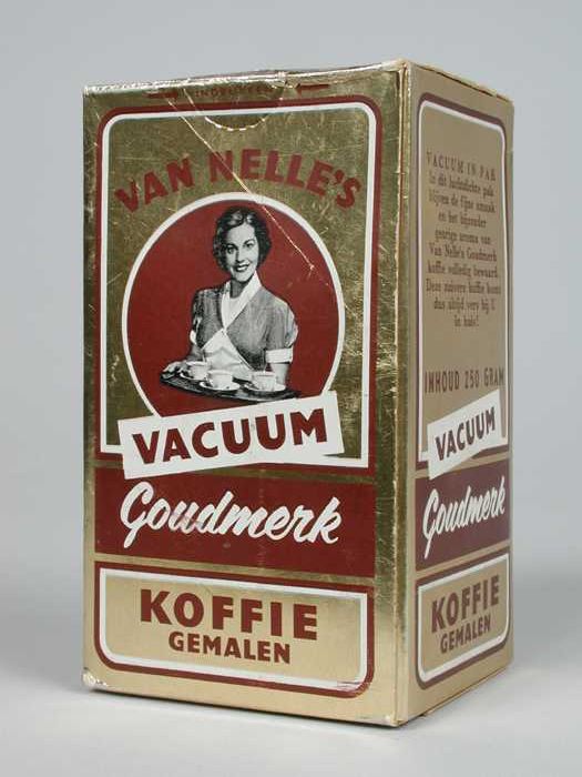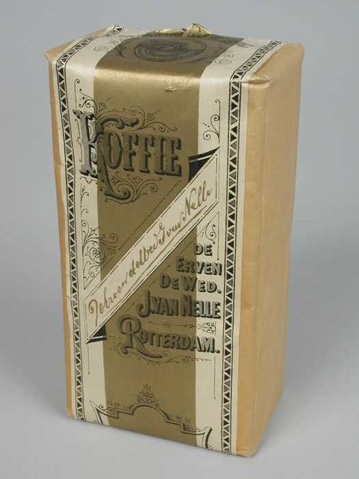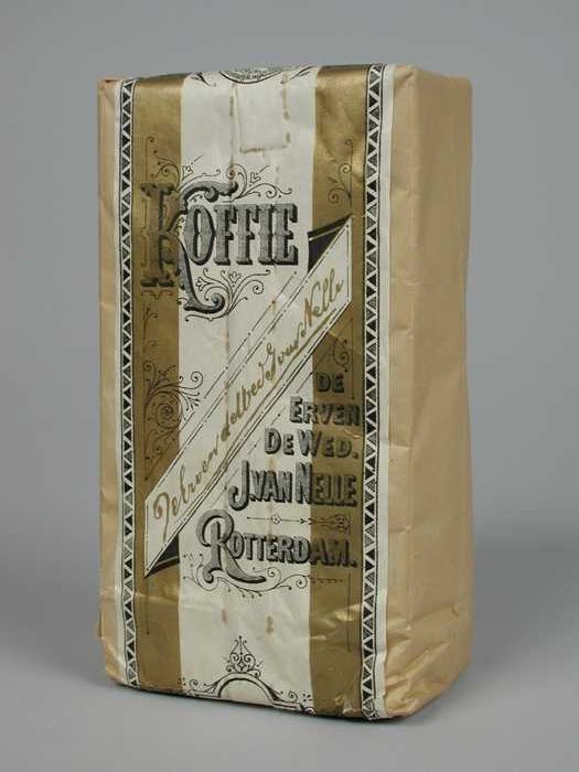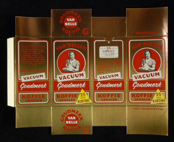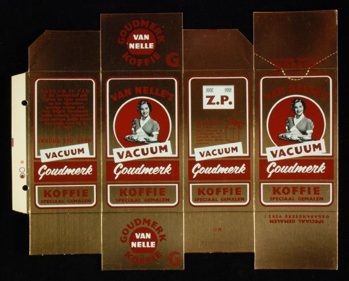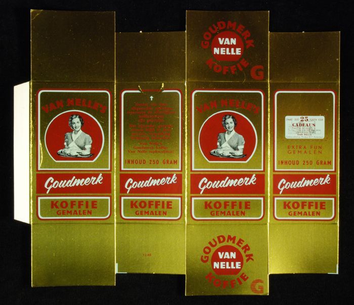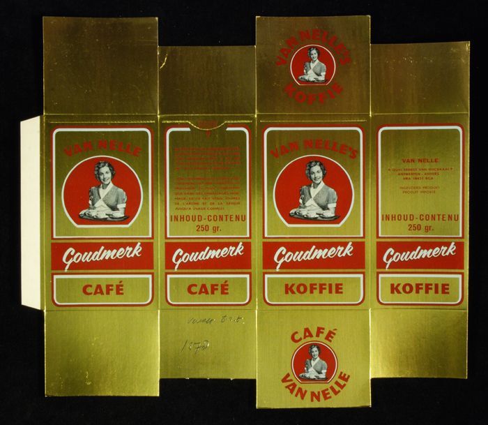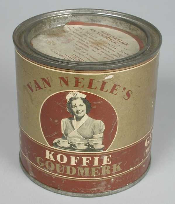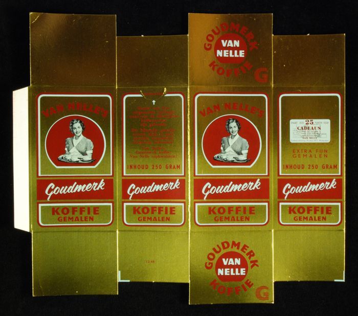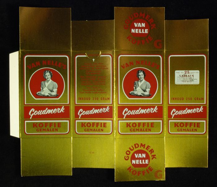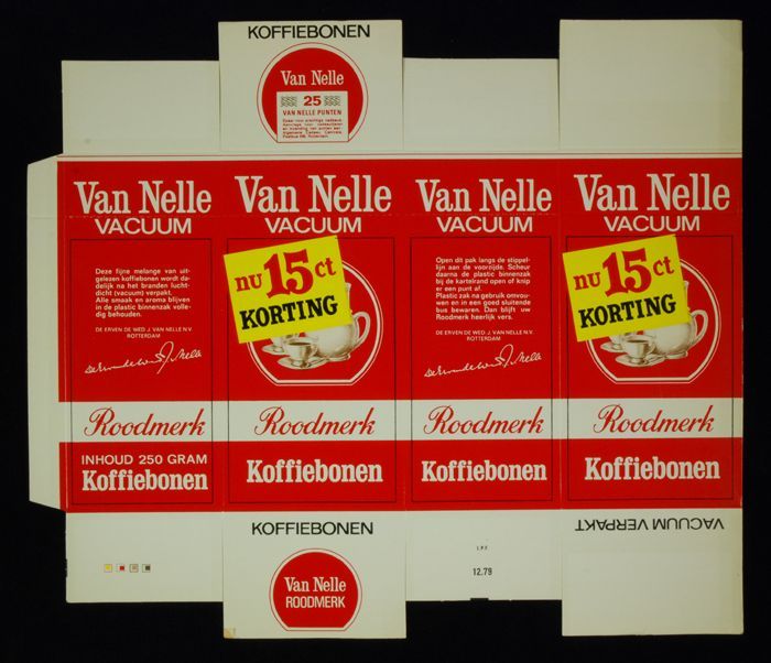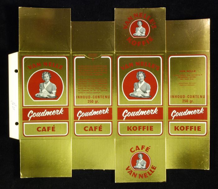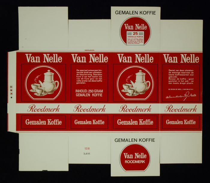 Wit papieren label VAN NELLE ROODMERK KOFFIE, met ee...