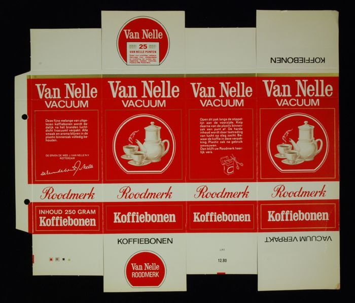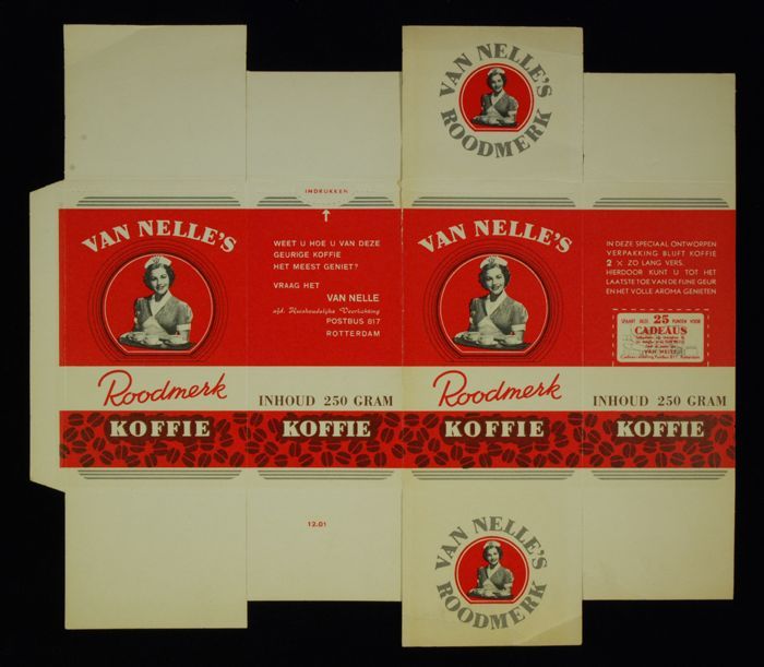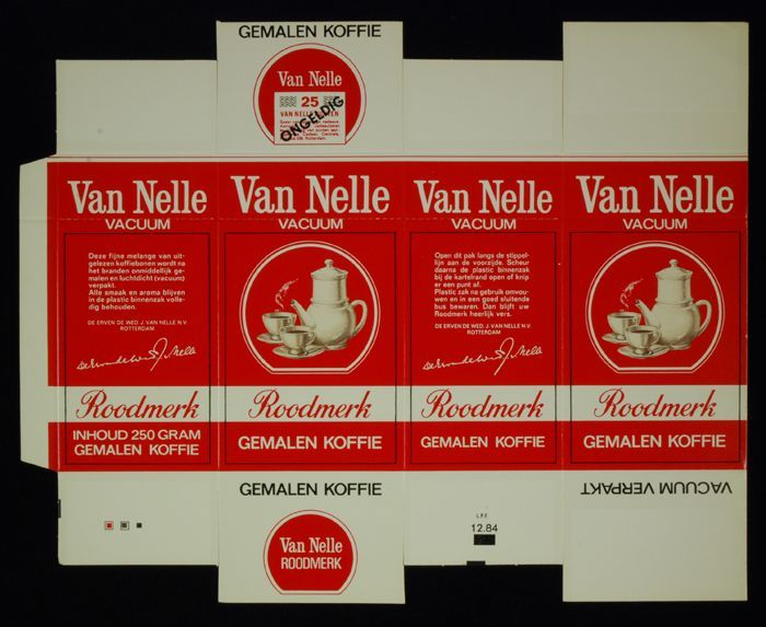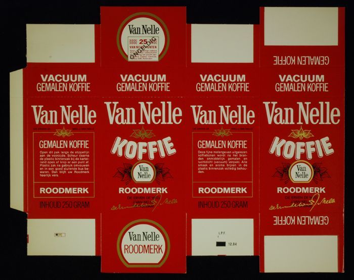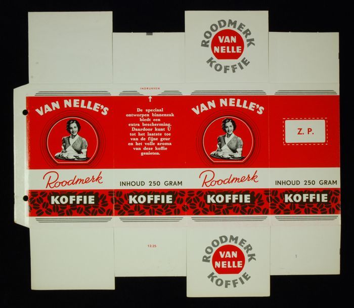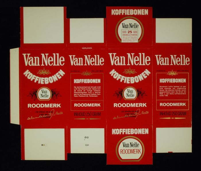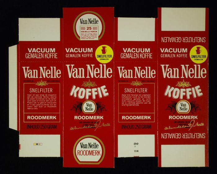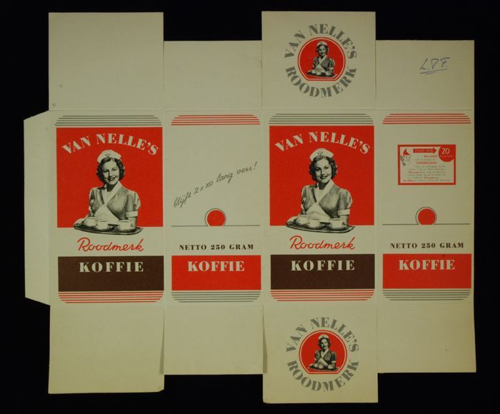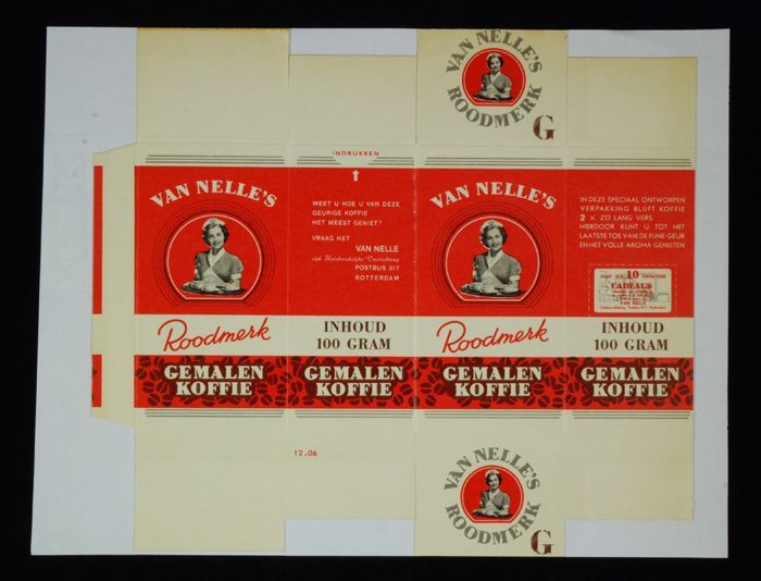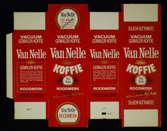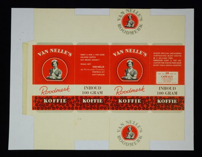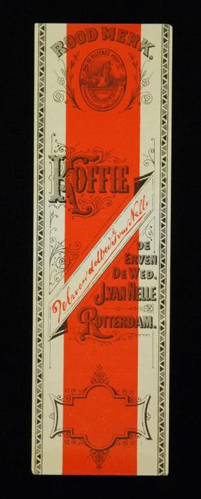 Rood papieren label VAN NELLE'S ROODMERK KOFFIE, met...