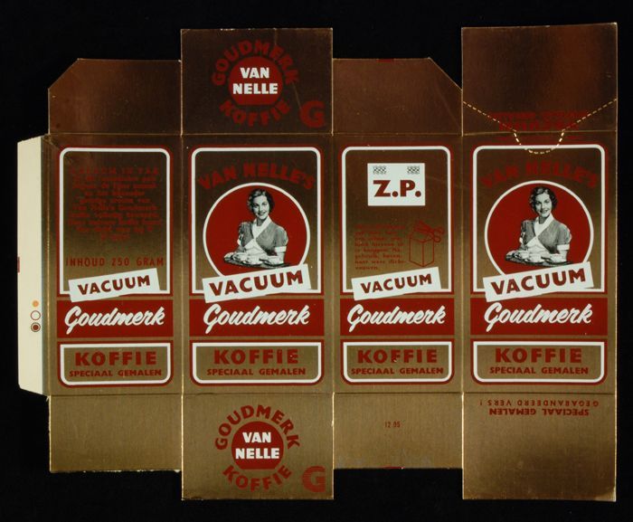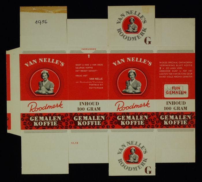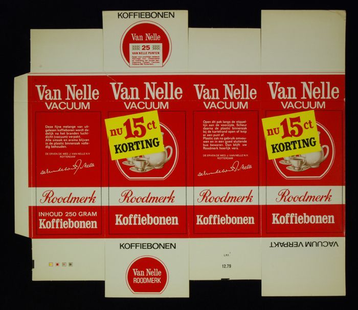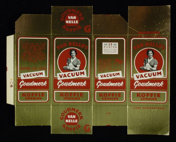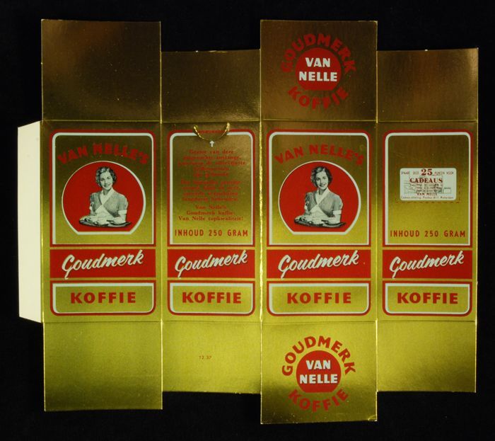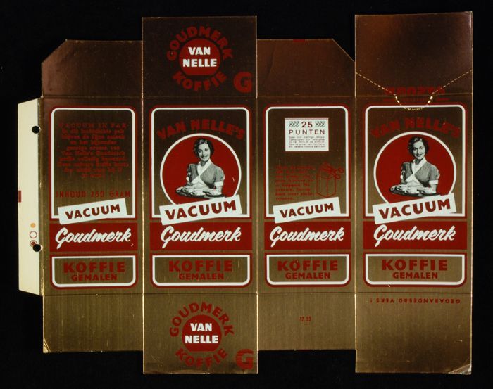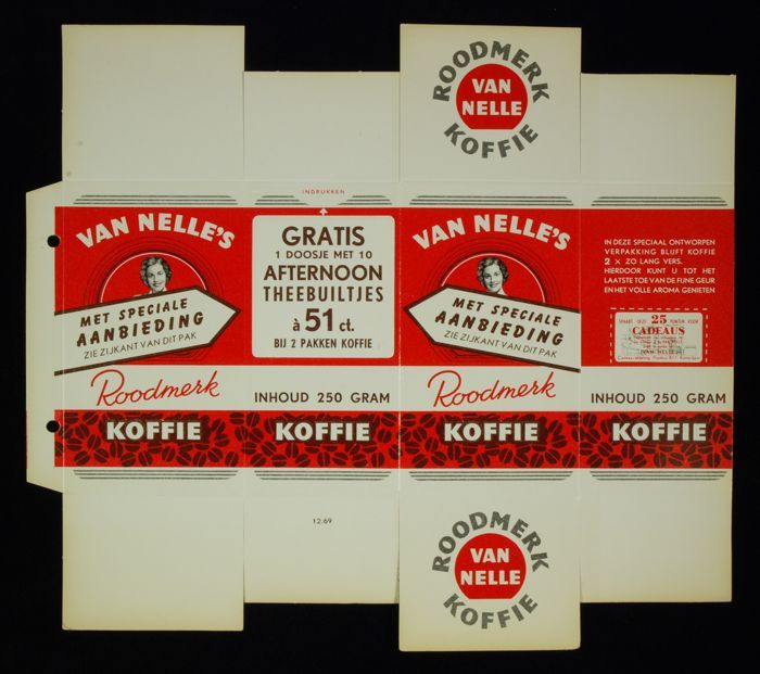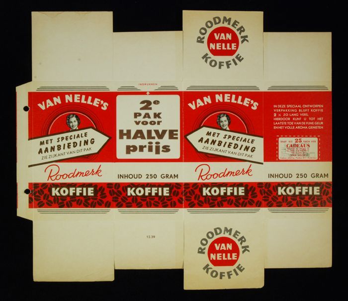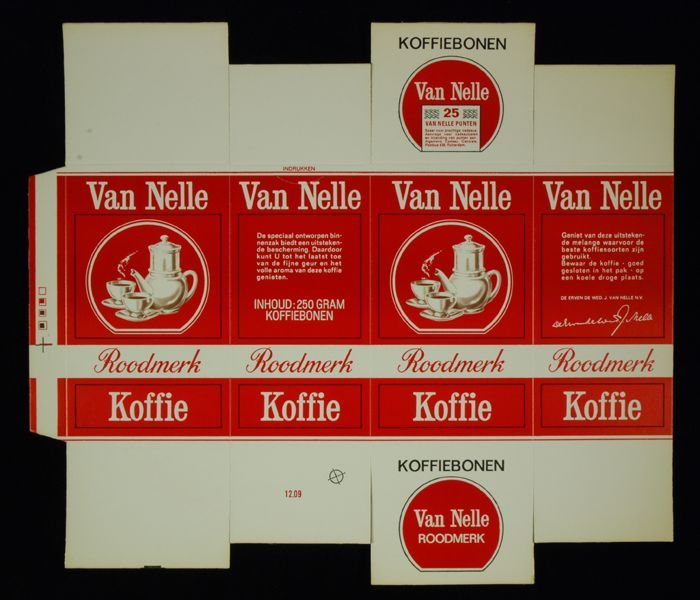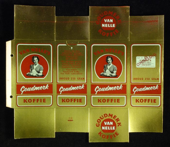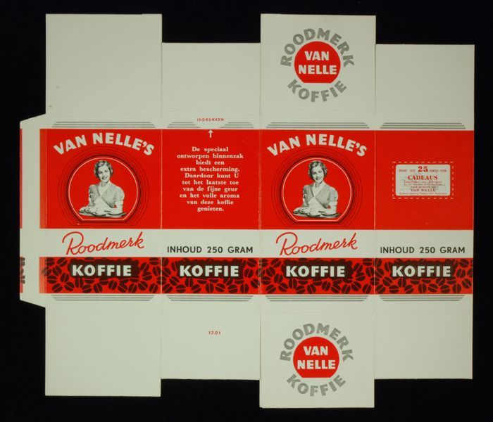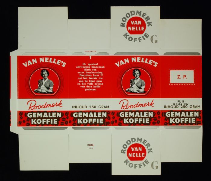 Rood papieren label VAN NELLE'S ROODMERK KOFFIE, met...