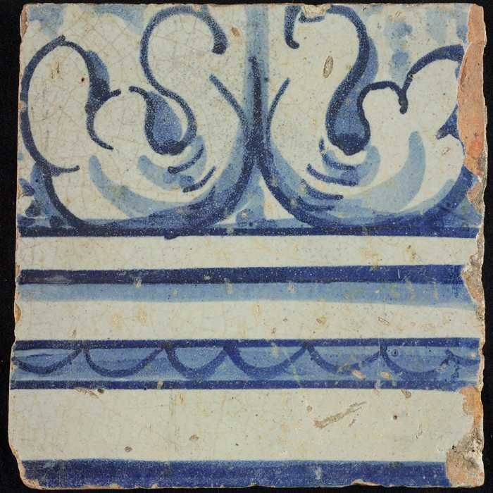 Tegel van schoorsteenpilaster, blauw op wit, deel va...