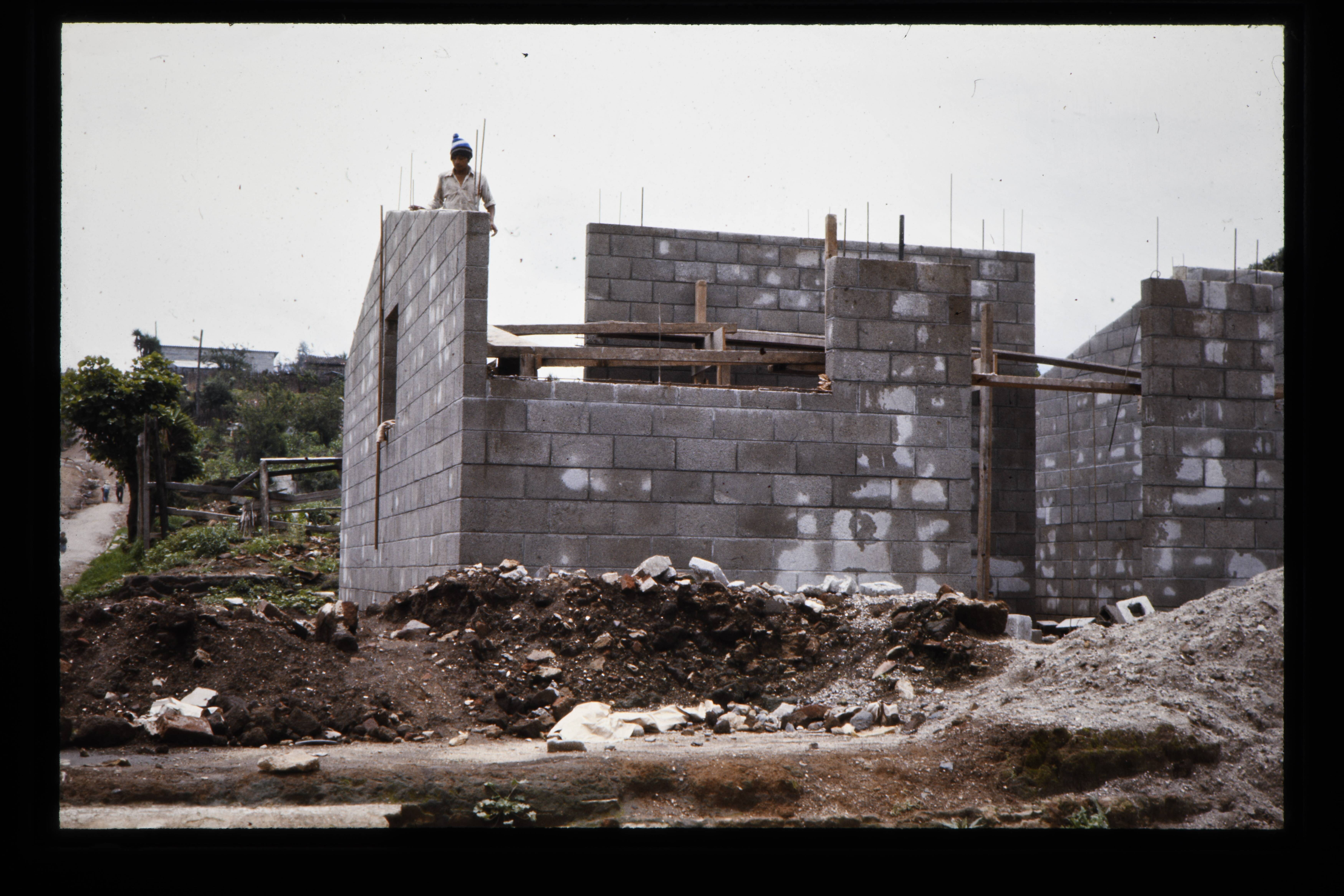 'De wederepbouw van de huizen te Patzún.'