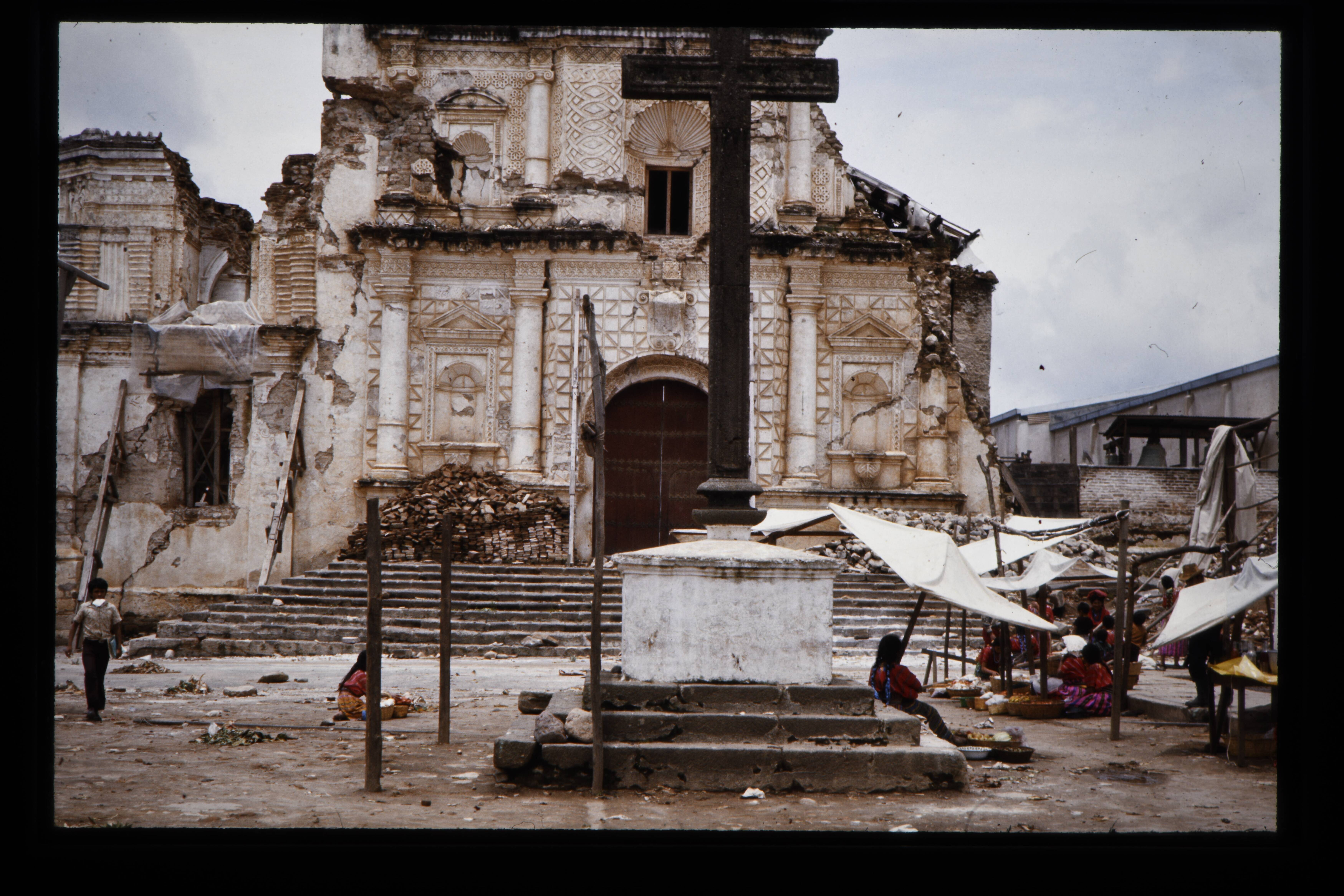 'De kerk van Patzún door de aardbeving van febr. '76...