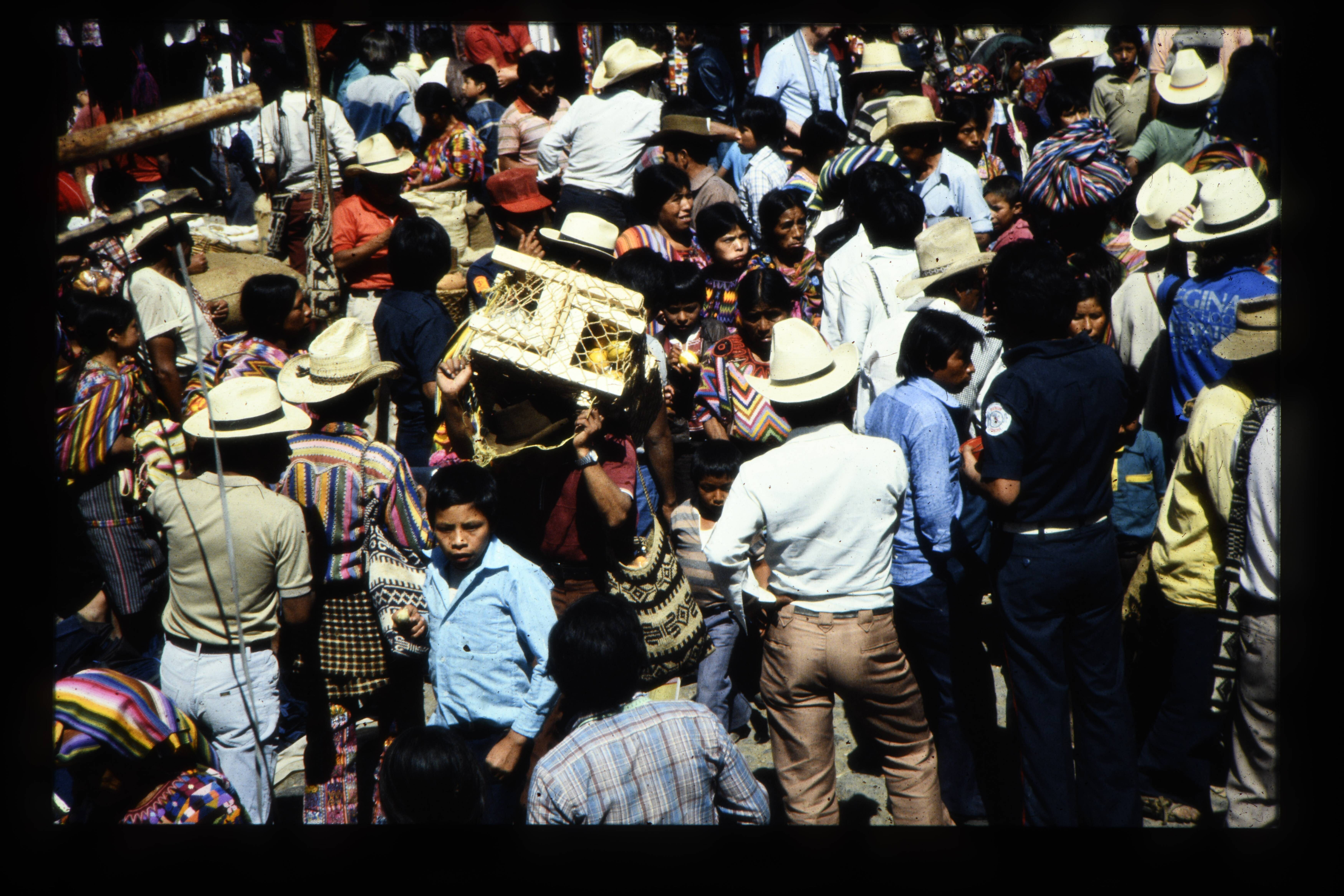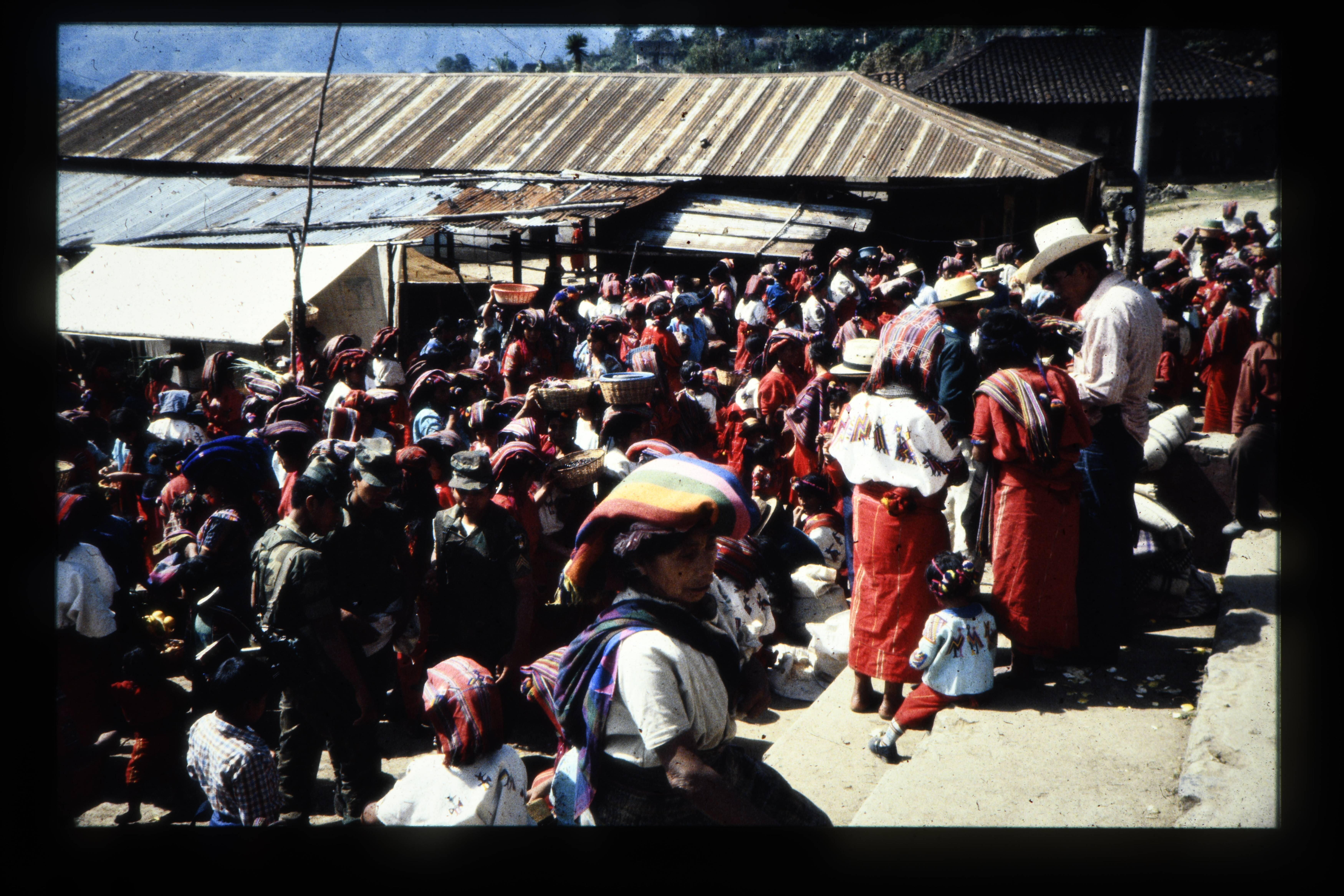 'Straatbeeld Patzún; op de voorgrond een wagen van I...