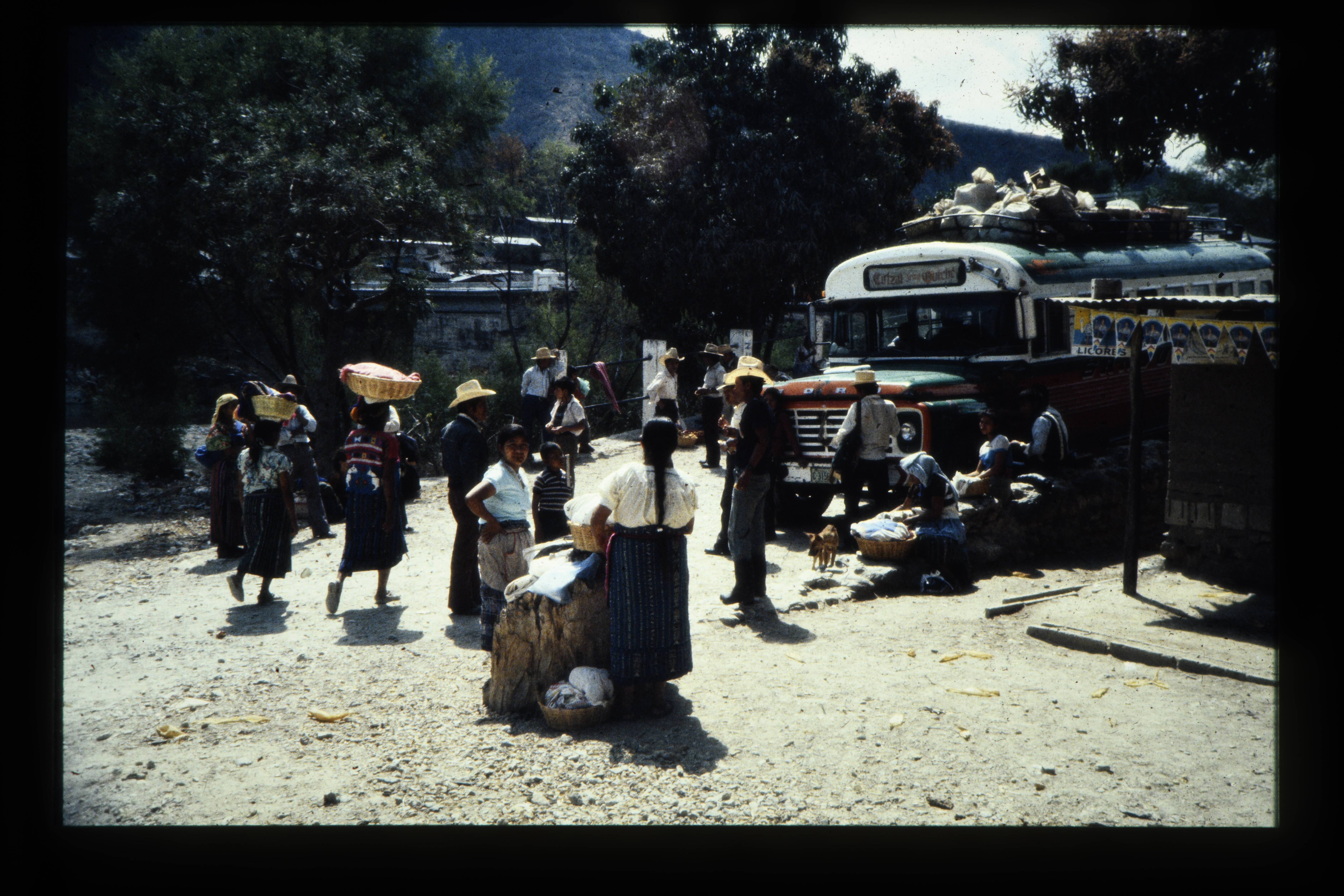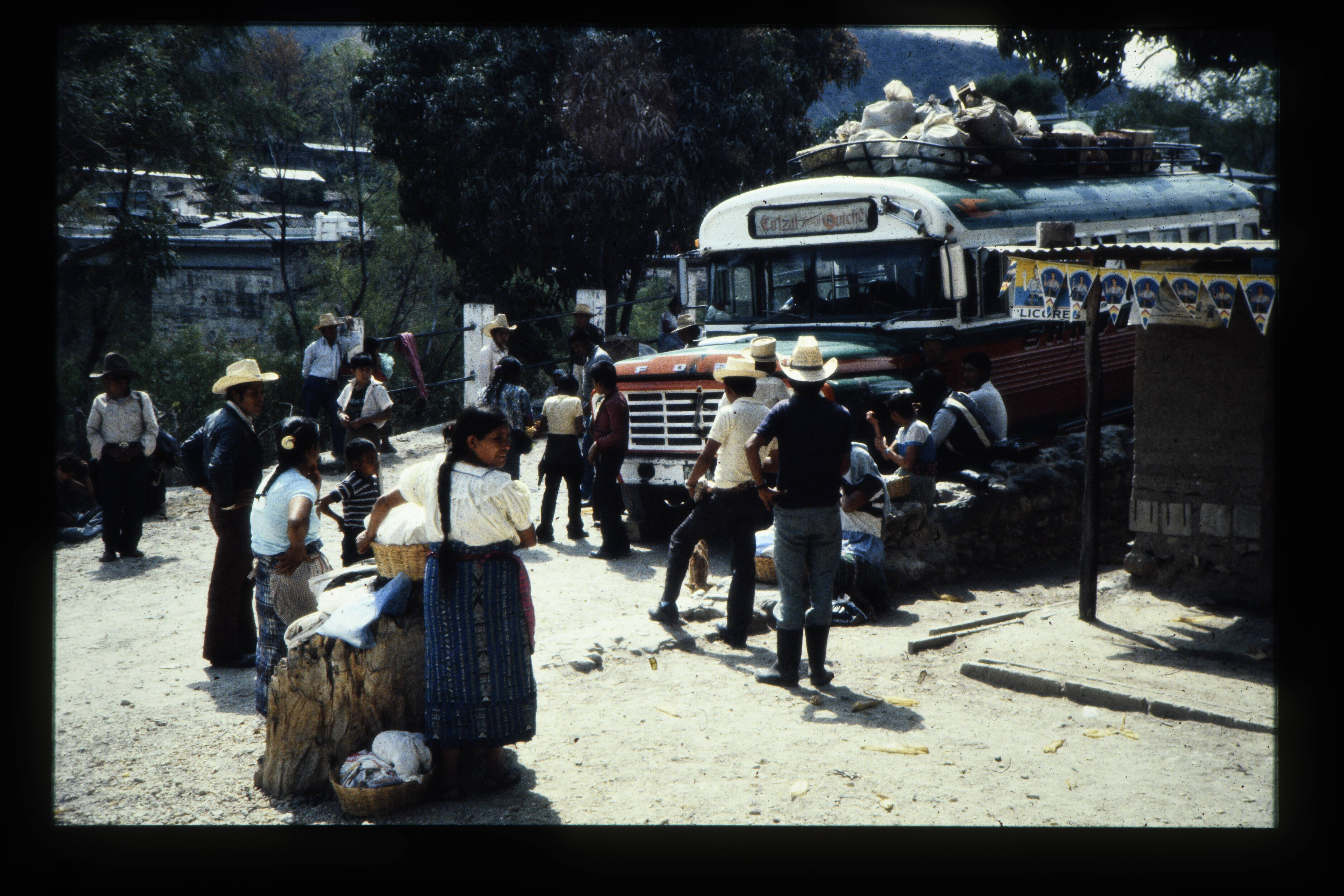 'Busstop te Sacapulas weg Huehuetenango-Nebaj.'