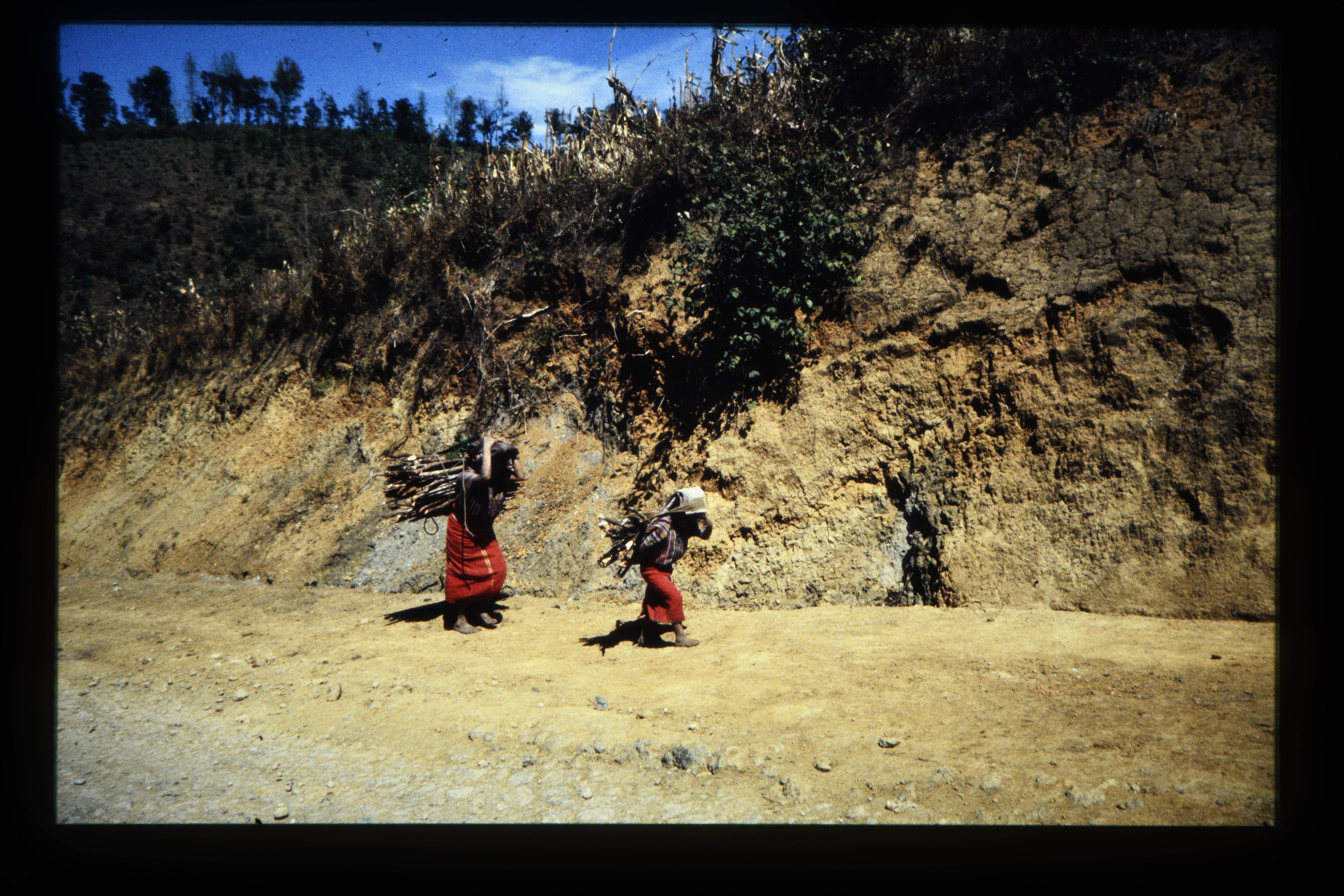 'Vrouwen sjouwen brandhout op het hoofd.'
