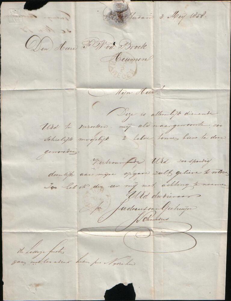 Brief aan Frans van den Broek