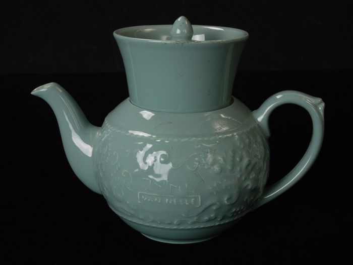Koffiepot van Van Nelle met afbeelding van de fabrie...