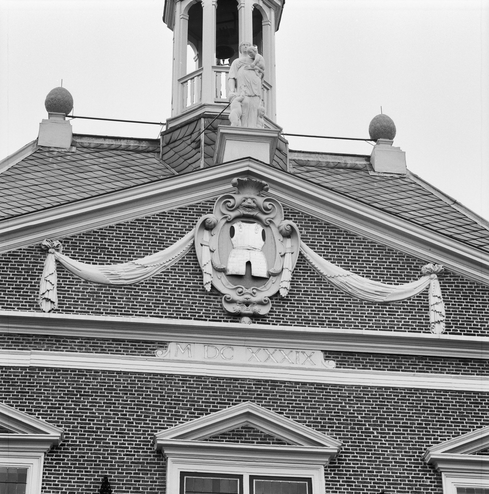 Voorgevel, FRONTON, GEVELSCULPTUUR (DRIE GEVELBEELDE...