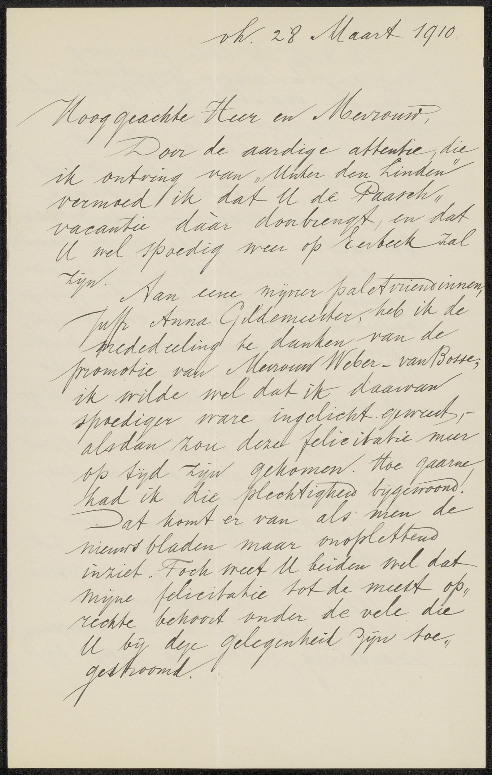 Brief aan Anne Antoinette Weber-Van Bosse