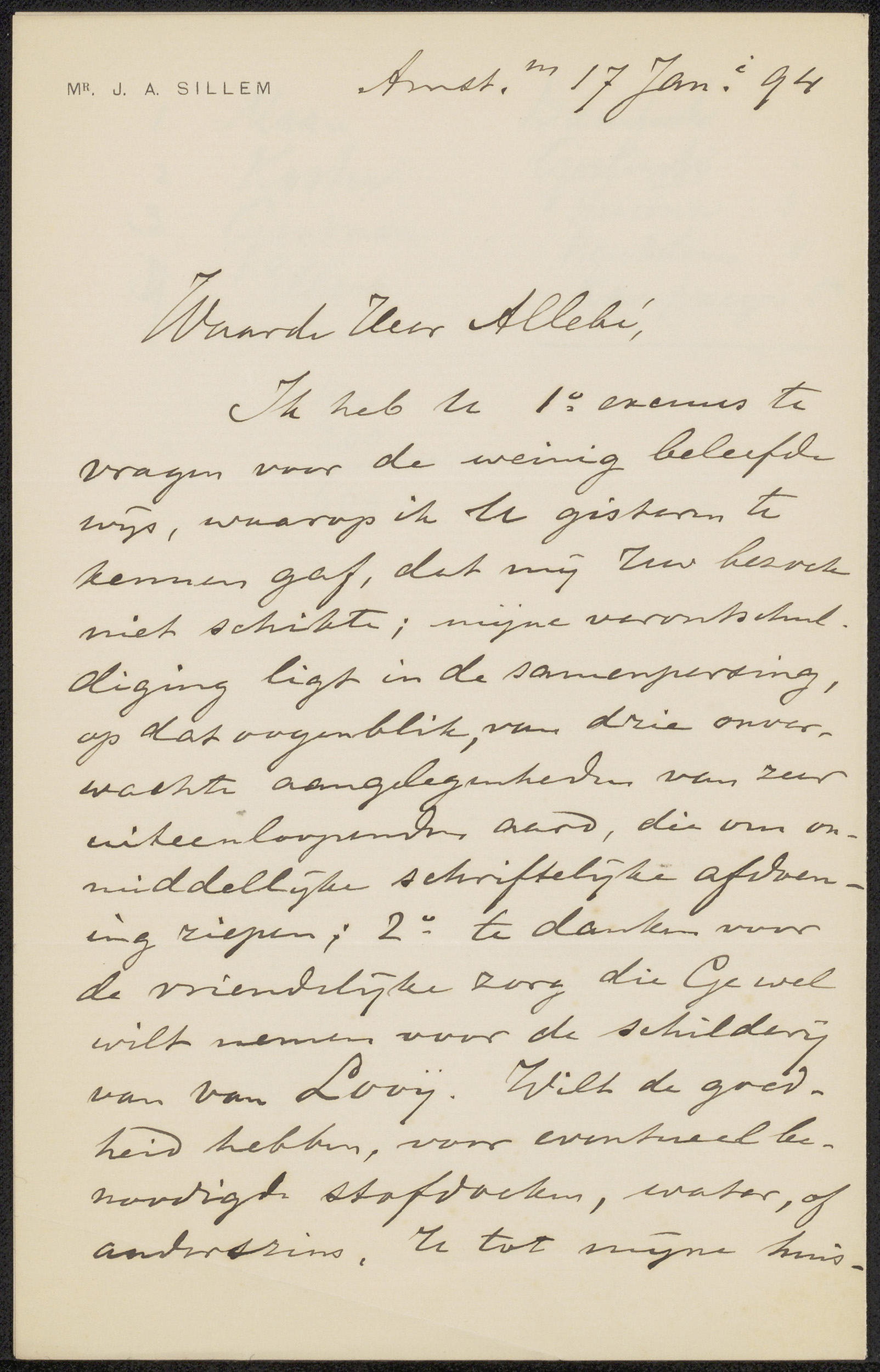 Brief aan Jérôme Alexander Sillem