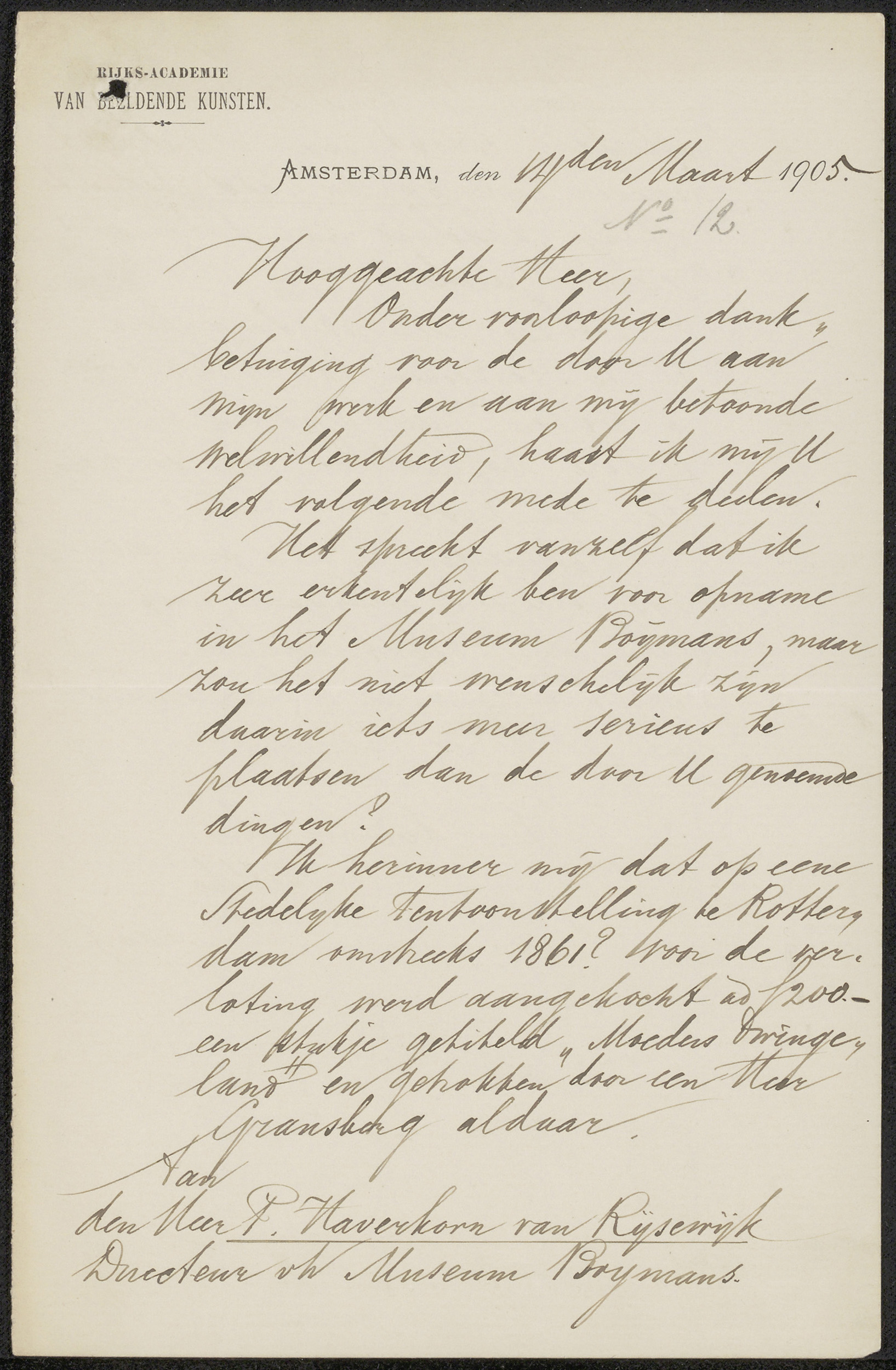 Brief aan Pieter Haverkorn van Rijsewijk