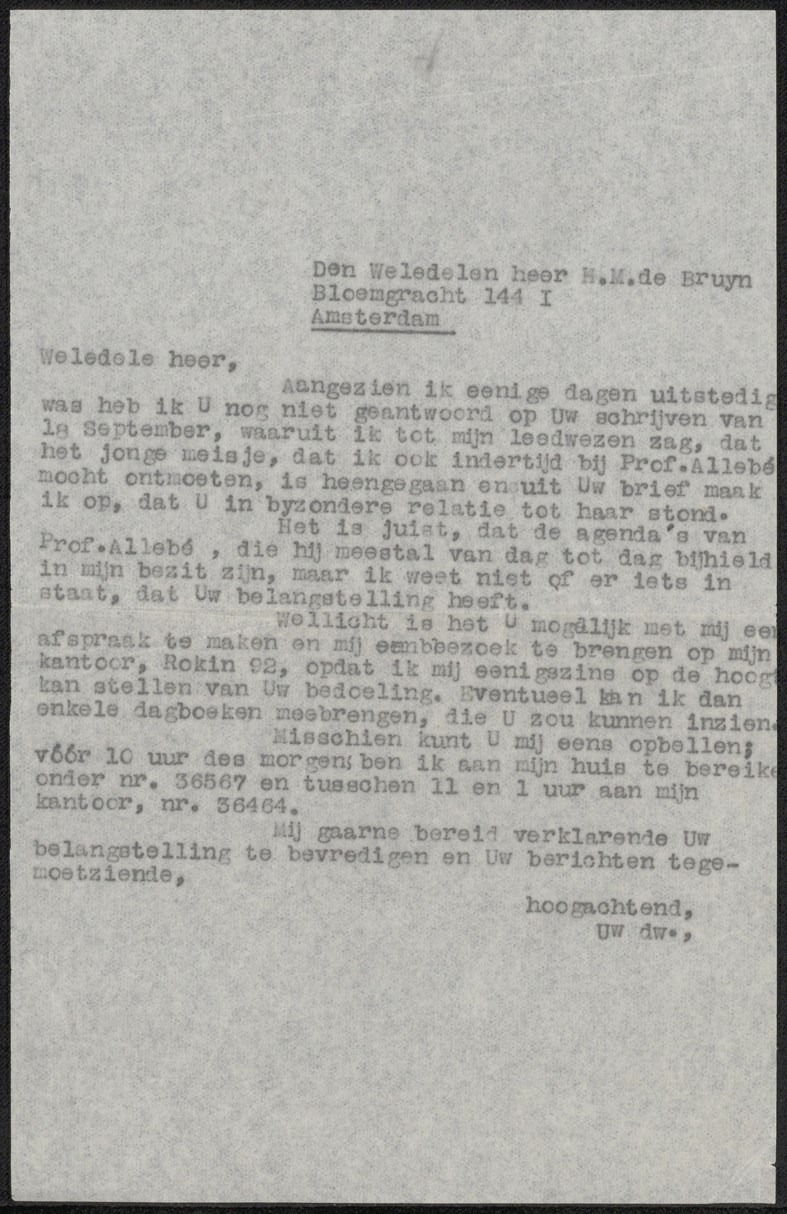 Brief aan H.M. de Bruyn