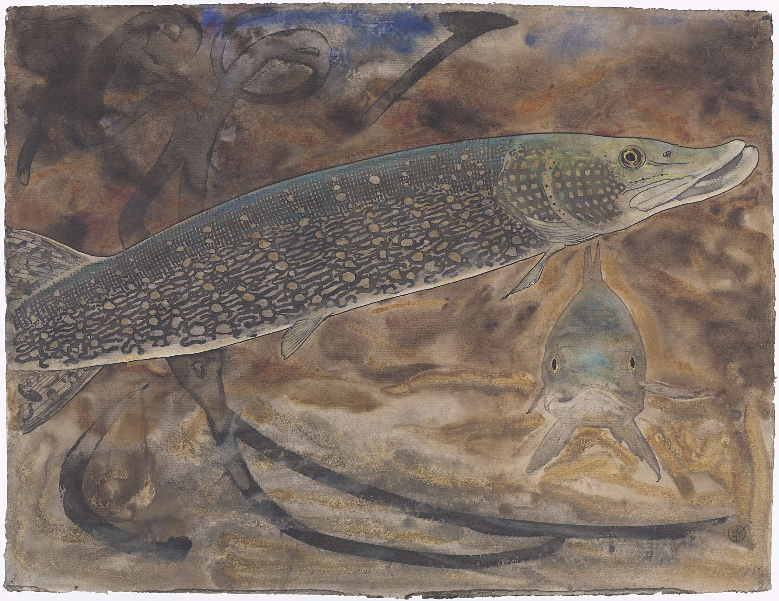 Twee Snoeken in een aquarium, van opzij en van voren...