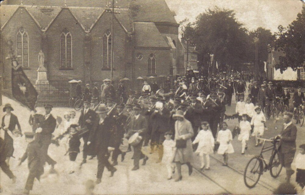 Kerkgangers oude RK kerk H. Antonius Abt